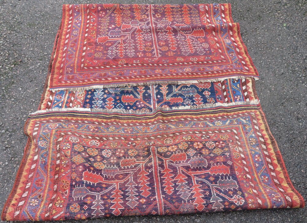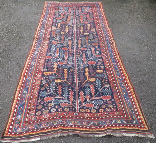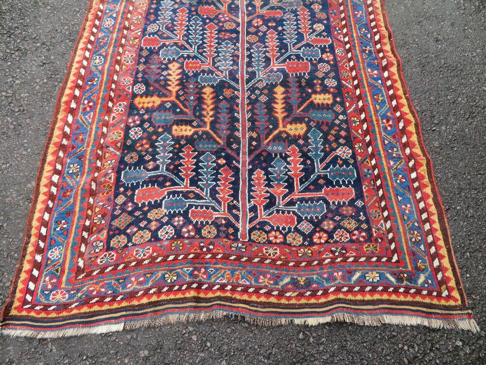 LOVELY TRIBAL ALMOST PRIMITIVE INTERPRETATION AND THE LARGEST TREE DESIGN IN A RUG I HAVE COME ACROSS FROM THIS TRIBE AT 11 FOOT 9 INCHES LONG !