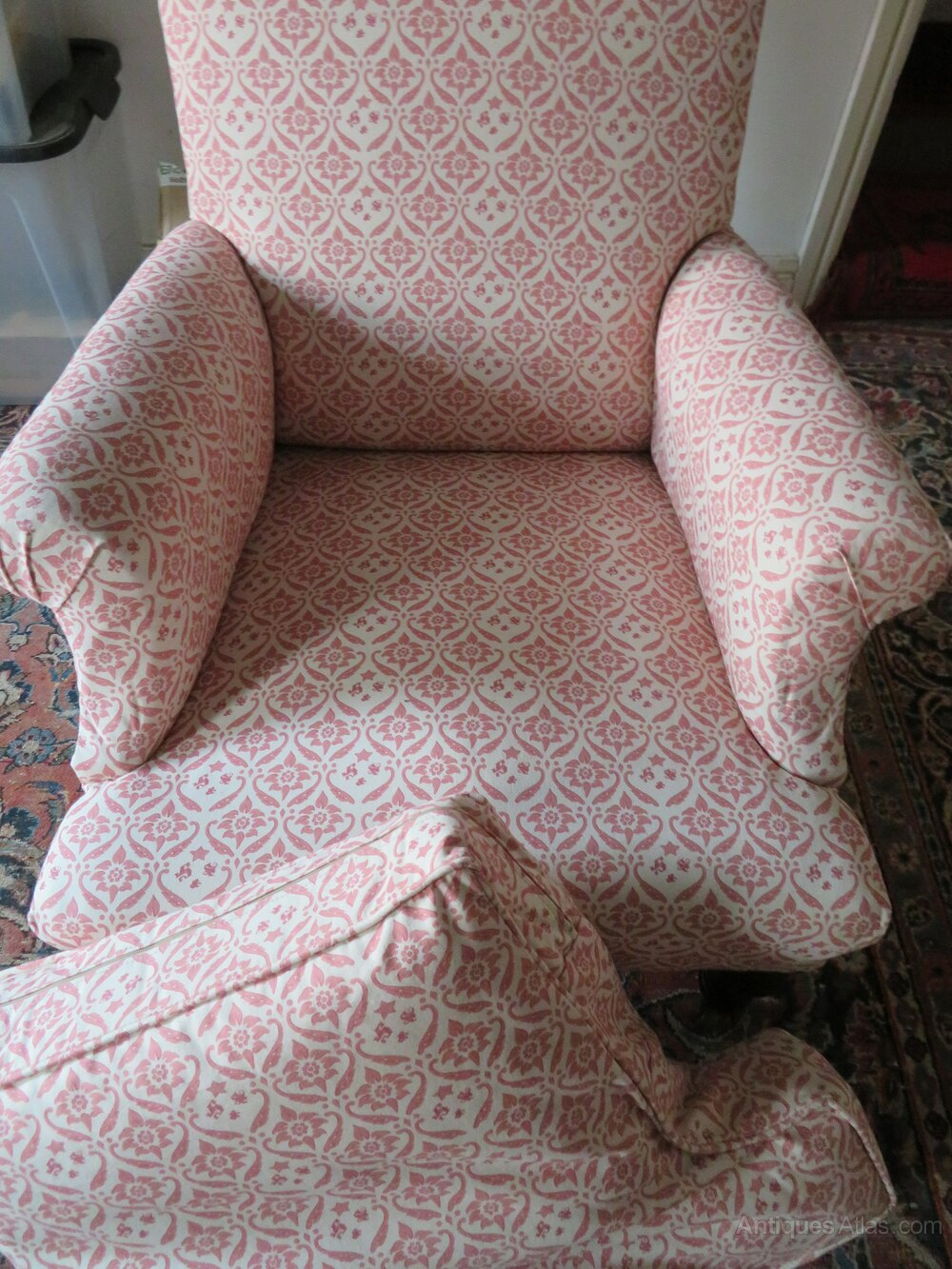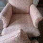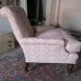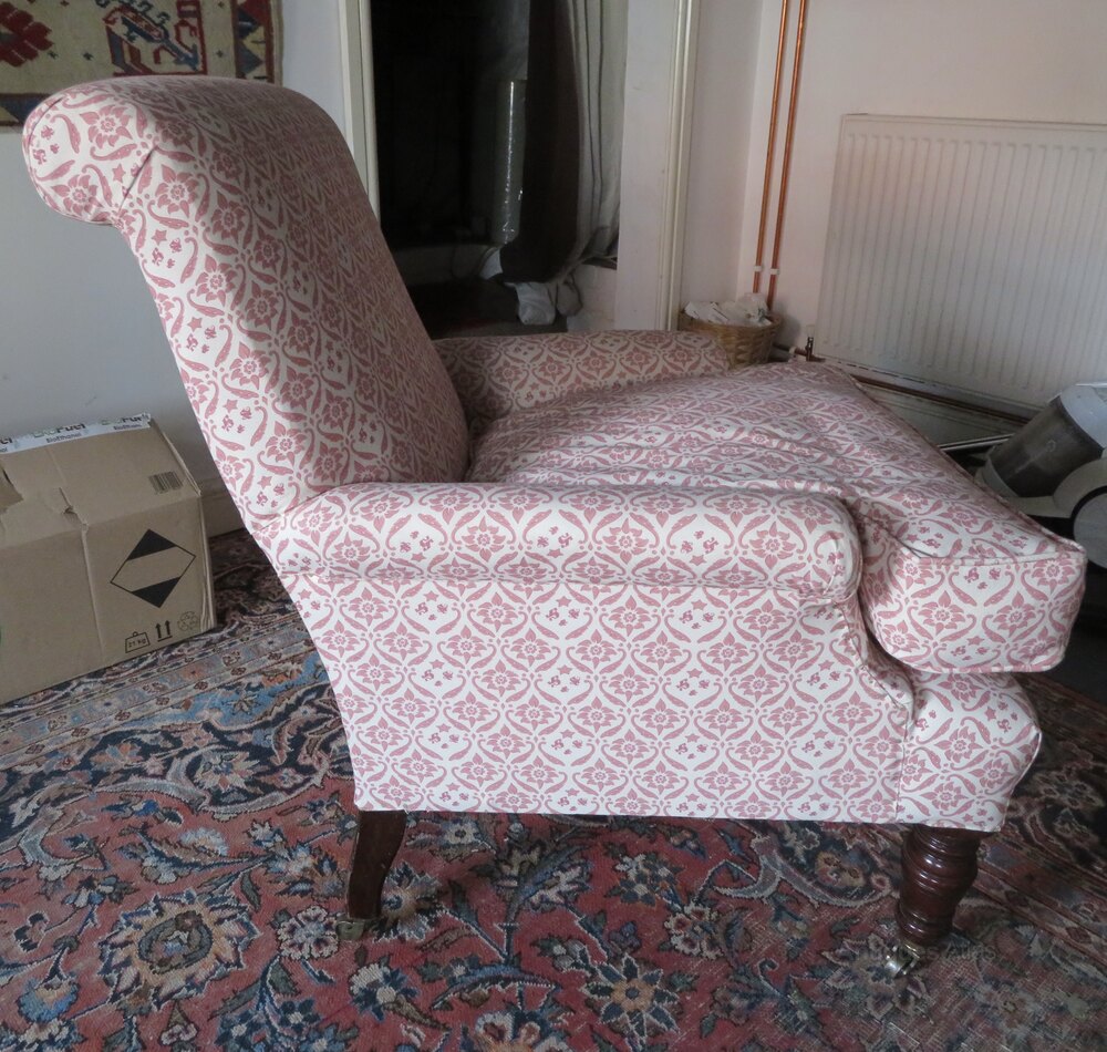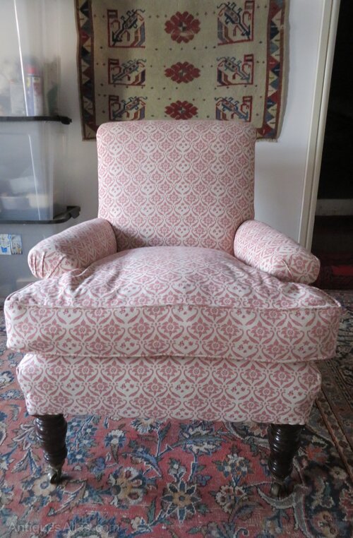 James shoolbred victorian armchair. Horsehair upholstery with a pretty dusky pink howard and sons cotton top cover. Feather cushion. Ready to go straight into home.Shipping information