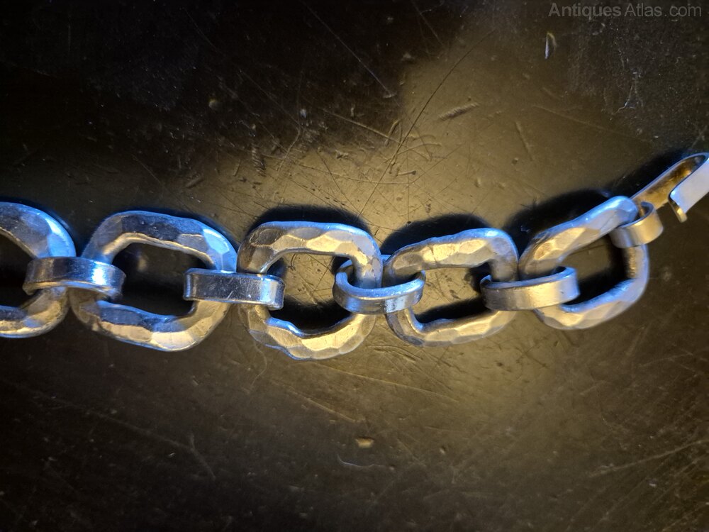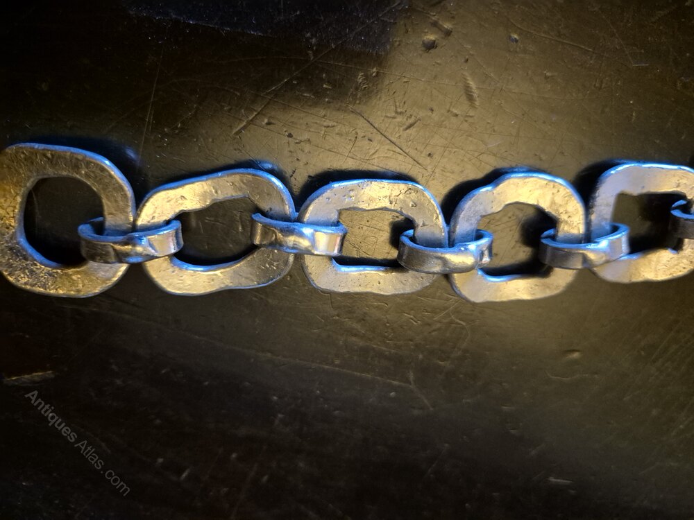 Lysgards Denmark 1970's hammered brutalist pewter bracelet, marked on hook clasp.Max length 7 1/2" (190mm)