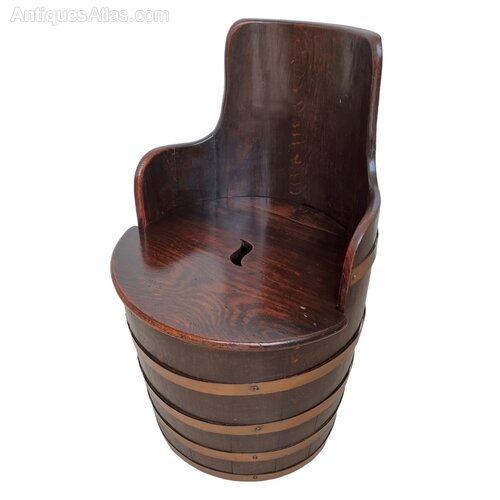 A fascinating and rare coopered oak log bin / fire-side seat by R.A. Lister.Whilst Lister is best know for it's coopered jardiniere, very few of these fireside bins exists.