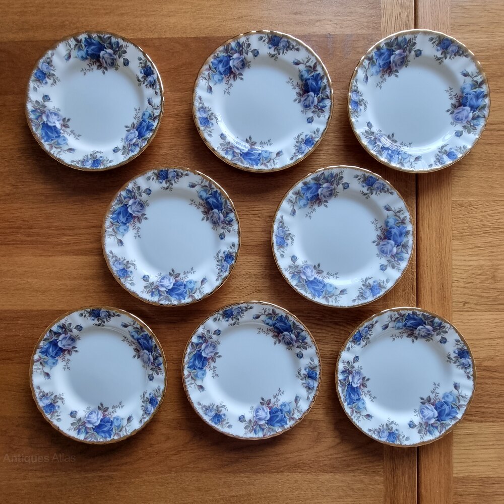 A very fine, gilded dinner & tea set by Royal Albert.The set, titled Moonlight Rose being a blue-hued take on the classic Royal Albert florals, this set featuring blue roses and gold accents.