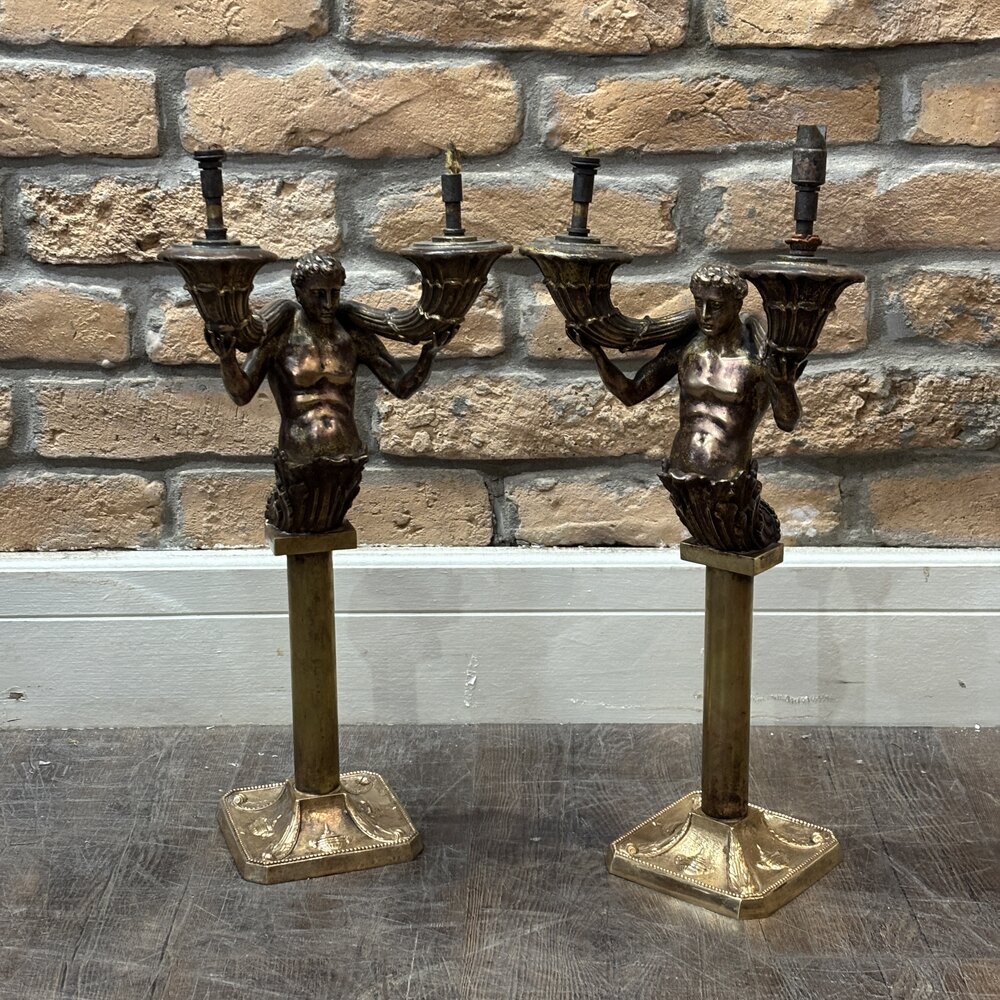 Pair of Merman Twin-Arm Candelabra Lamps