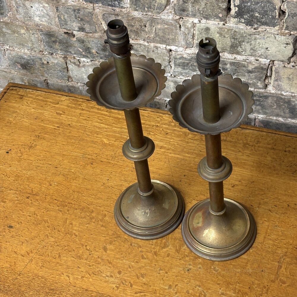Early 20th Century Brass Candlestick Table Lamps