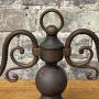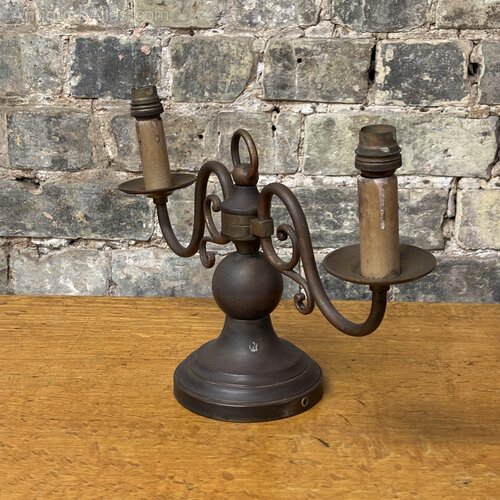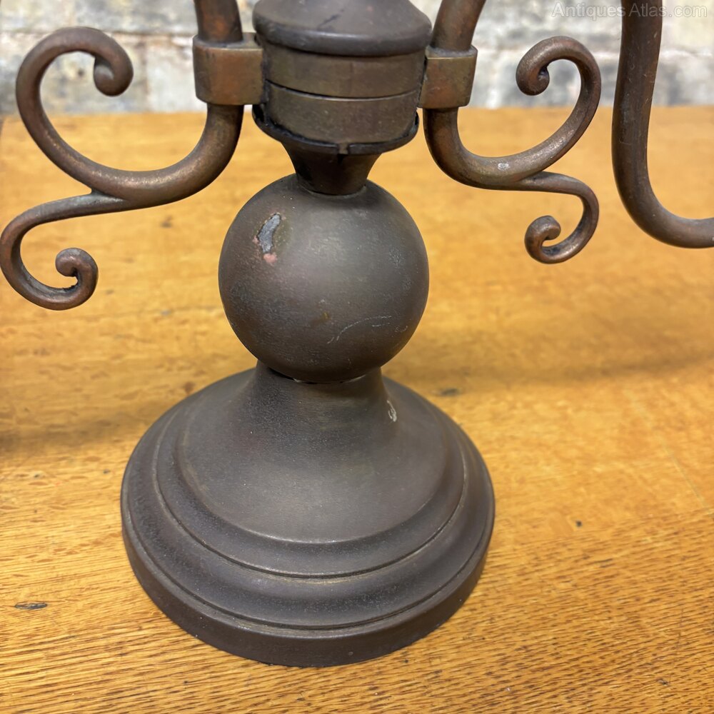 It retains its original candle sleeves and fittings, along with an integrated switch to the base, typical of the period. The overall look has a nice slightly gothic / revival feel, with the scrolling arms giving it a good sense of movement.