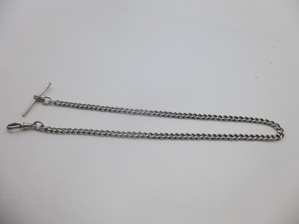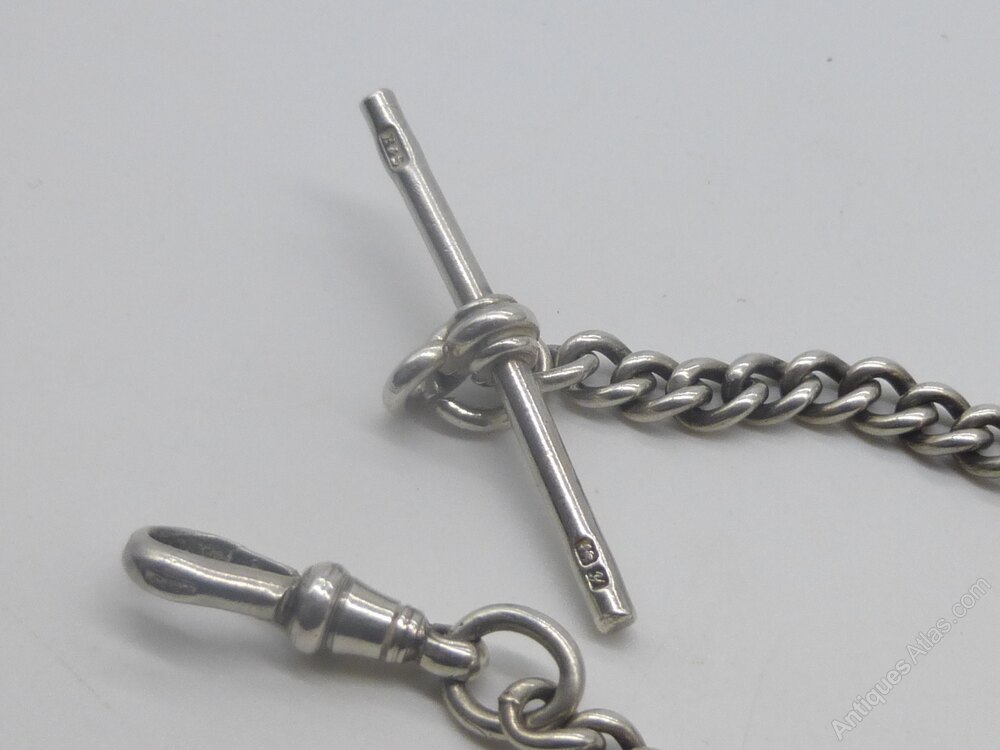 A silver Albert watch chain,hallmarked Chester 1924.the length is approx. 14 1/2 inches,and the weight is approx.22 gms.In very good condition,all parts are matching.Origin UK.Please ring or e-mail with any further questions.