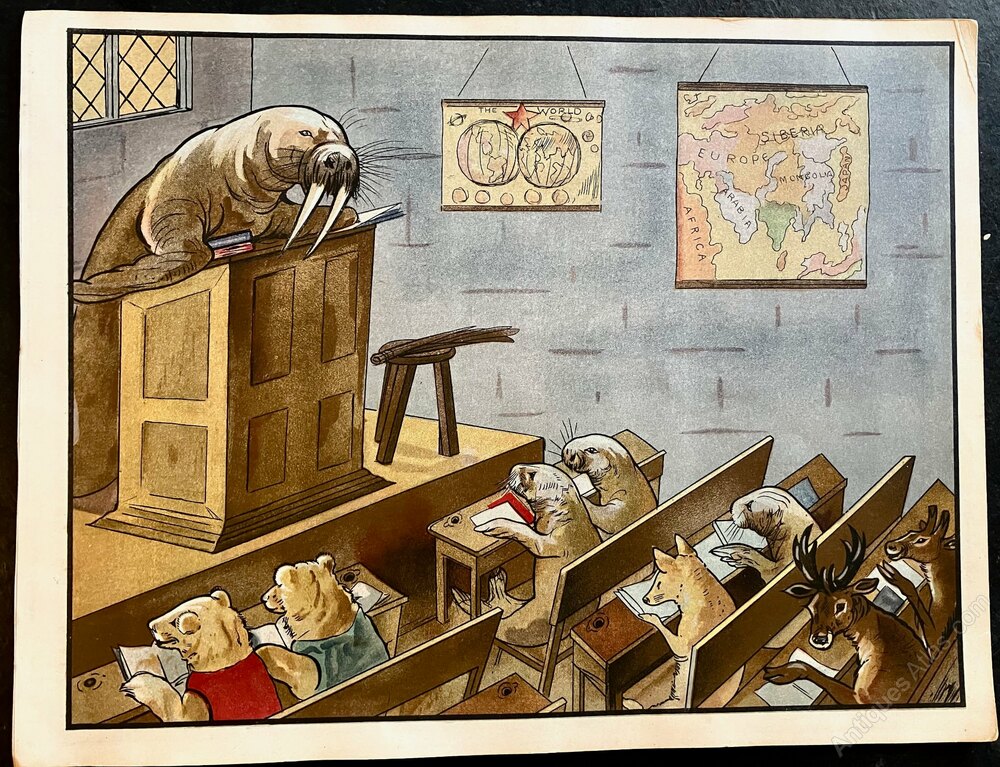 A Single Print From the 1920 Book Titled: Arctic Orphans, Printed on Thick Card With Small Printed Black & White Illustration to Reverse of Print,