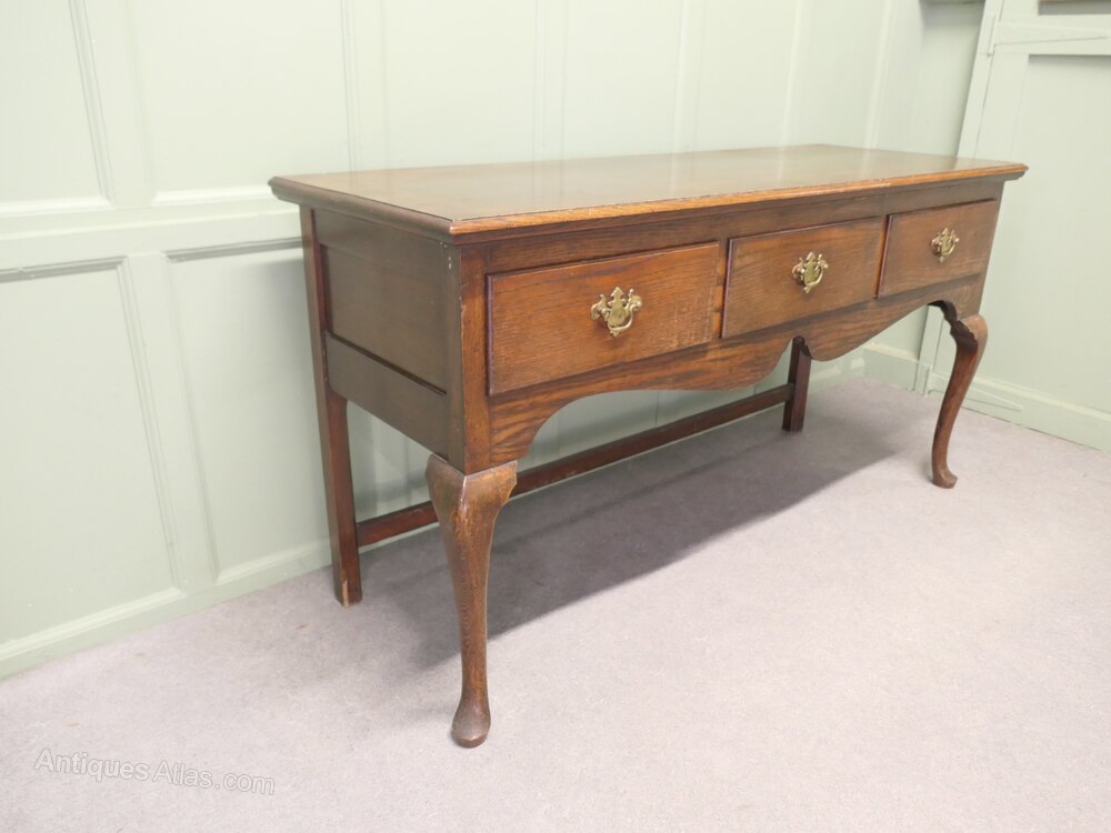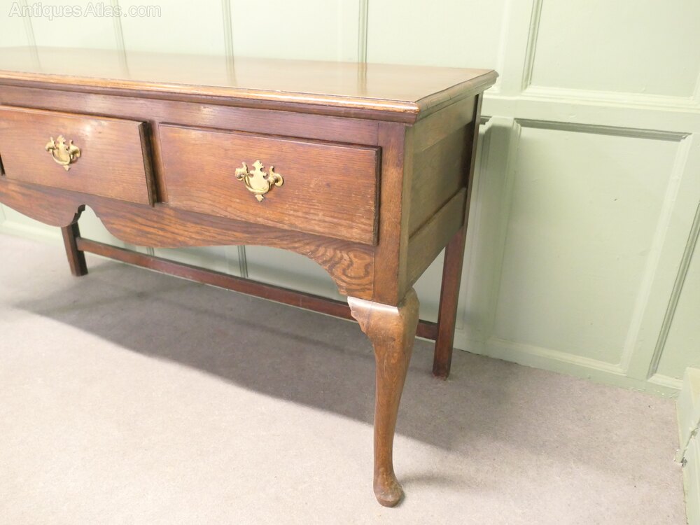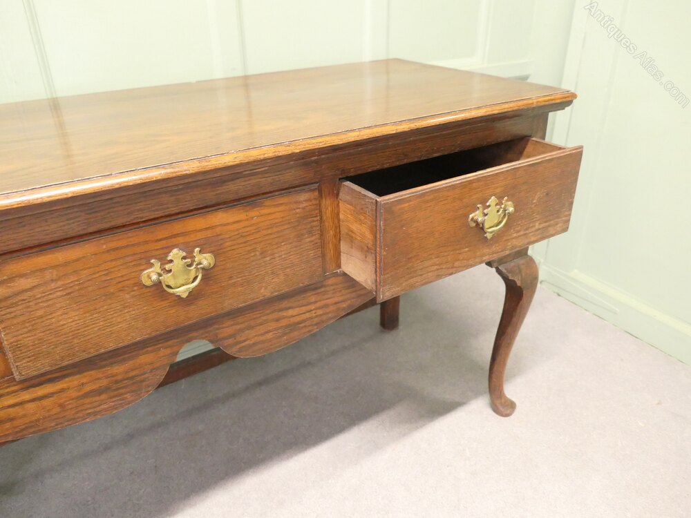English Country Oak Cottage DresserA beautiful Country made dresser it is made from Oak it has two deep drawers and stands on sturdy Pad Feet with a long stretcher at the back