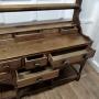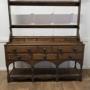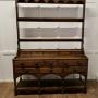 Georgian Country Oak Cottage DresserThe dresser has a shelved top with 2 shelves these have plate rails and it has a scalloped cornice with blacksmith made hooks, beneath there is a row of spice drawers, under the counter a selection of larger drawers all these over an arched pot board base.