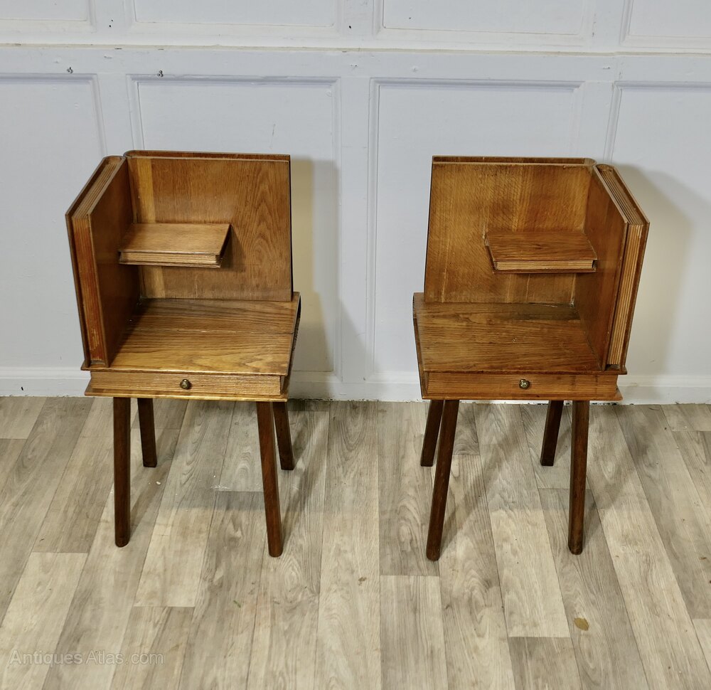 Pair of French Arts and Crafts Outré Bedside Table