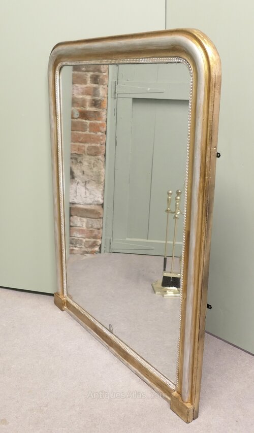 Tall French Silver and Gold Louis Philippe Wall MirrorThis is a very beautiful Large Statement or Stand Alone Piece from the 19th Century, the 4” frame has a very unusual silver and gold colouring with a moulded frame