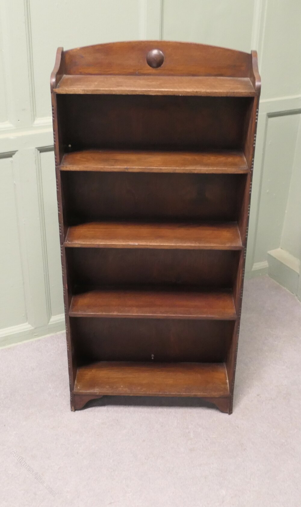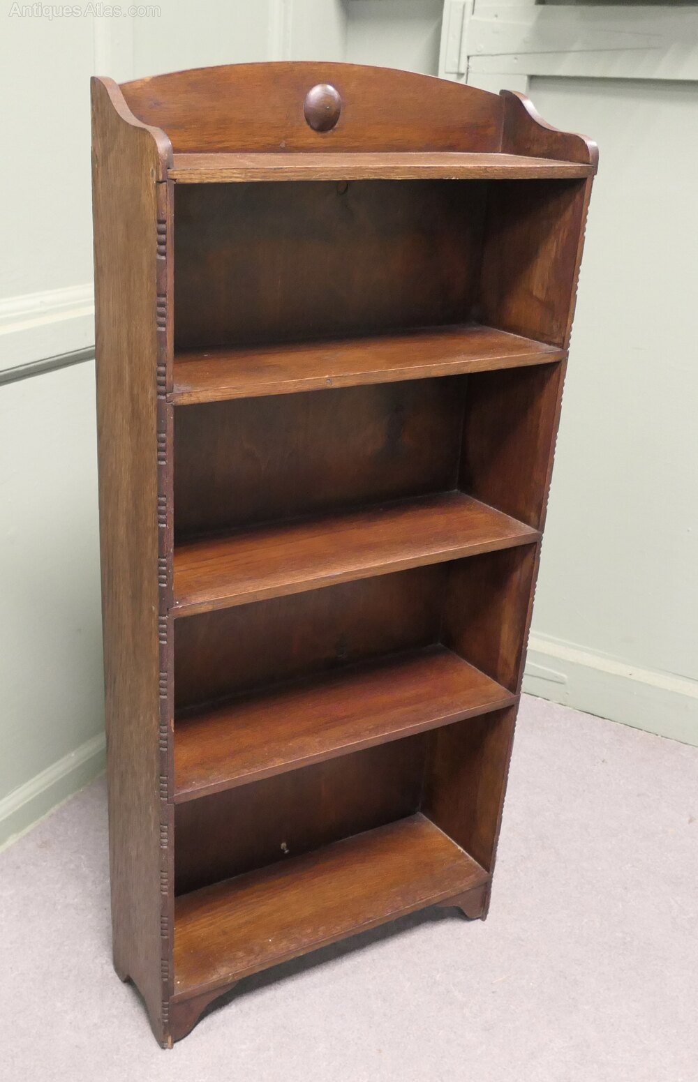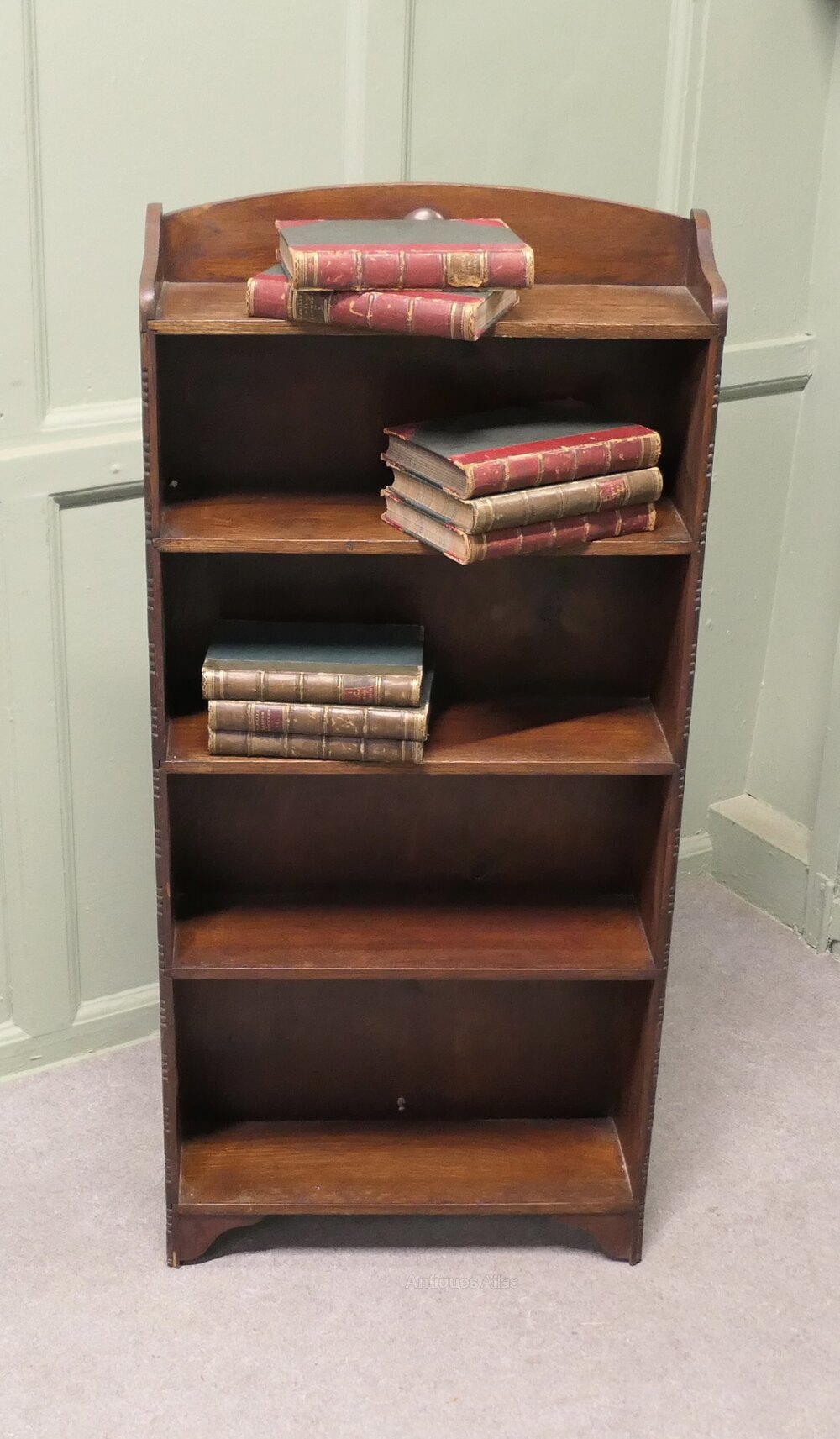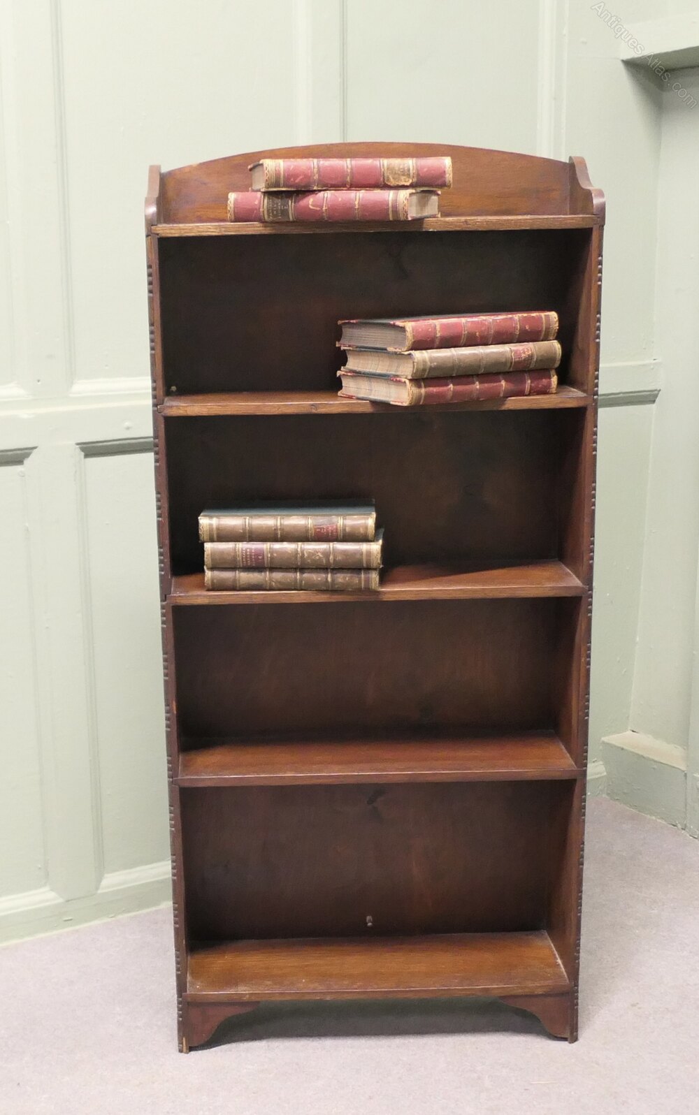 Art Deco Book Case with Mouldings to the FrontThis charming little shelf unit has a gallery to the back and 5 open shelves