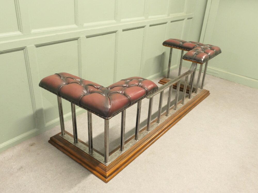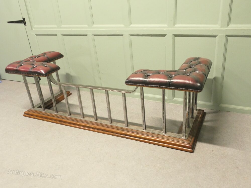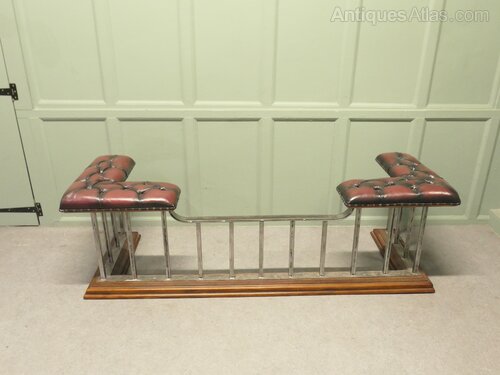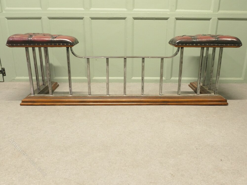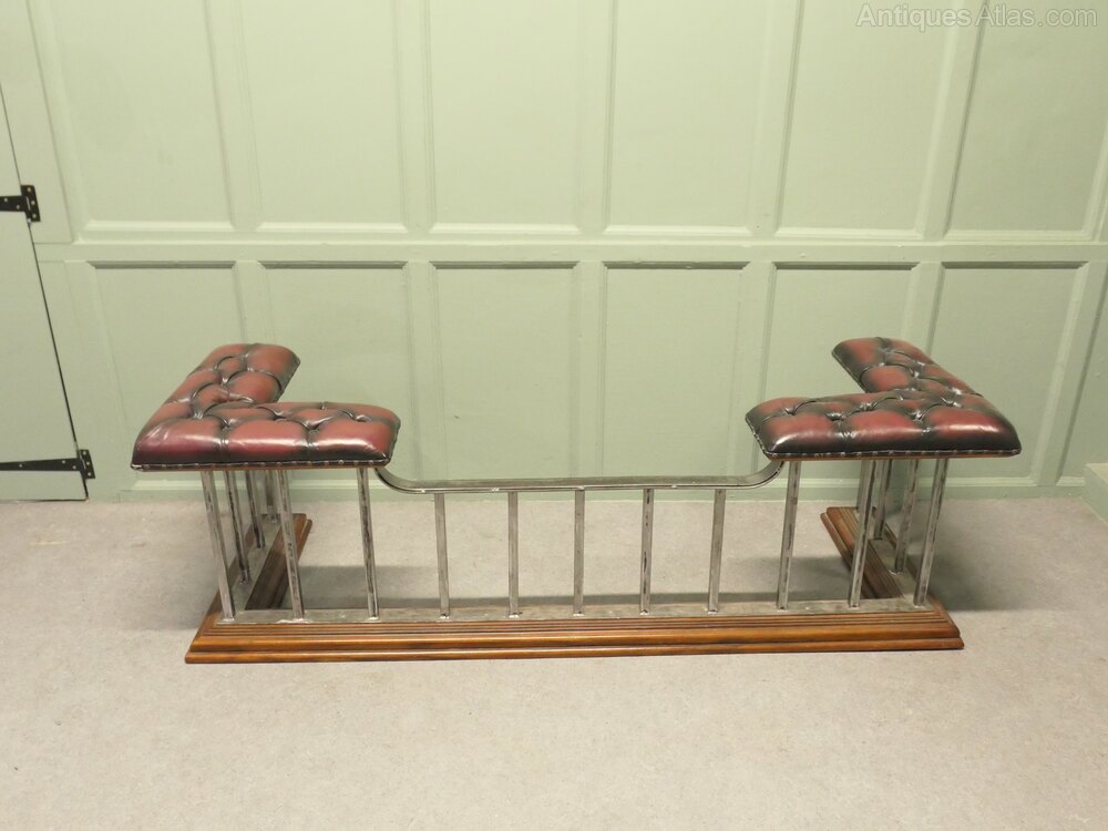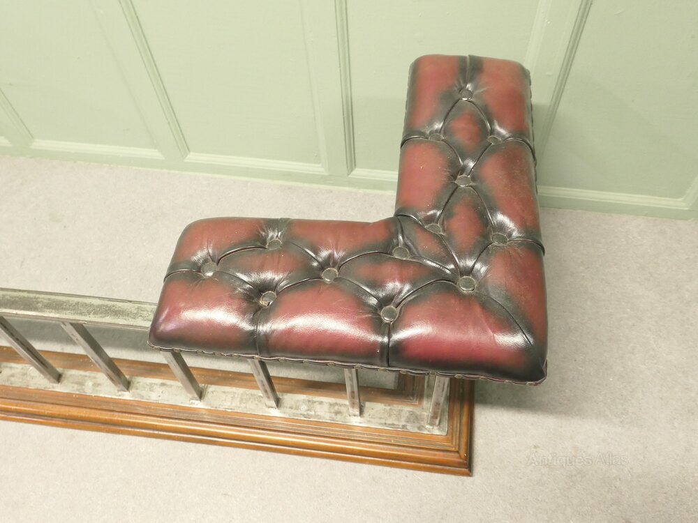 A Large Heavy Victorian Brass Club Fender Set on WoodThis is an elegant piece of country House Furniture the seats have deeply buttoned upholstery with soft redish brown leather, this is an old and heavy quality fender