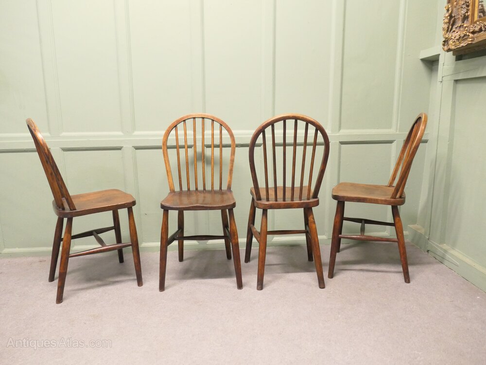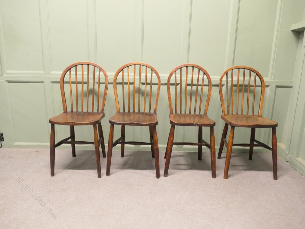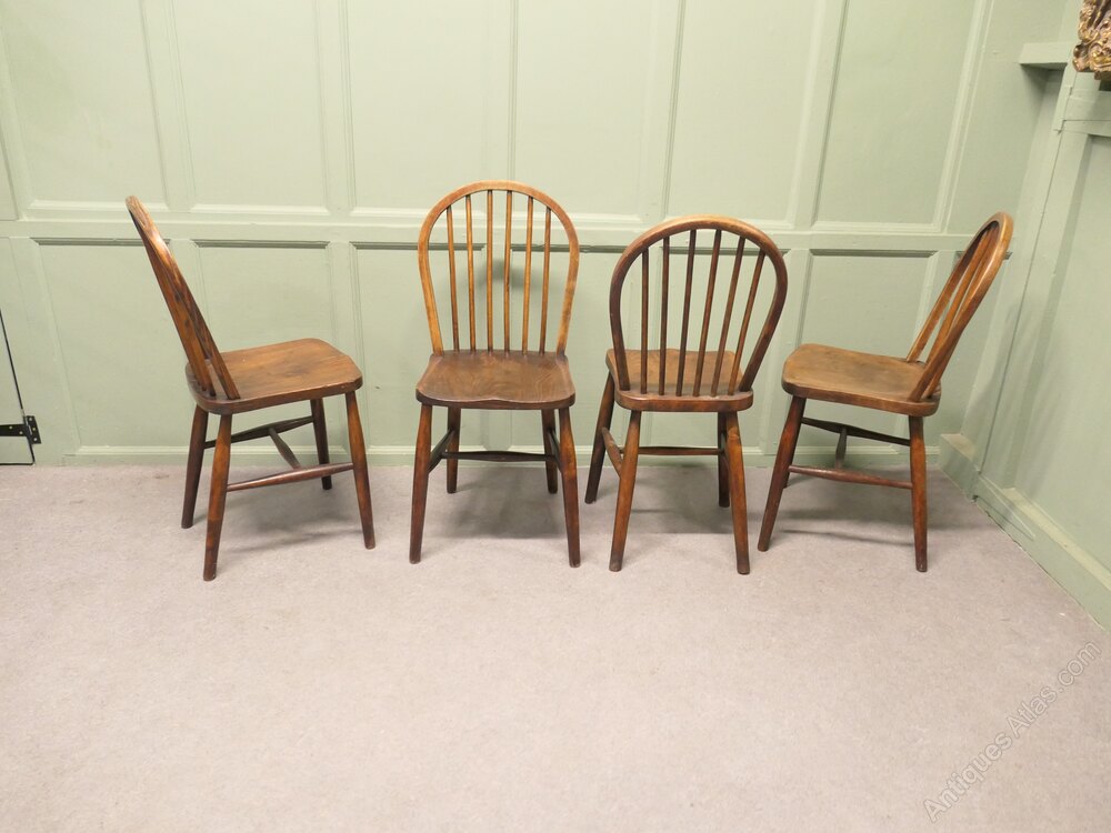 Set of 4 Beech & Elm Hoop Back Windsor Kitchen Dining ChairsThe chairs are a classic design and traditionally made they have hooped backs in the traditional Windsor style and they all have a beautiful solid elm well shaped Saddle seat