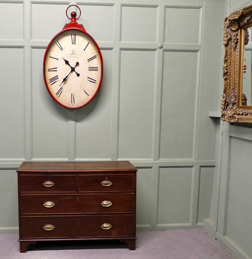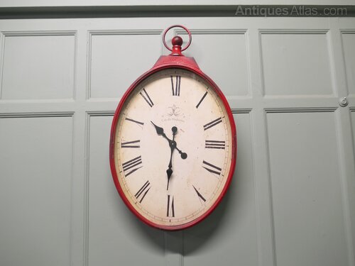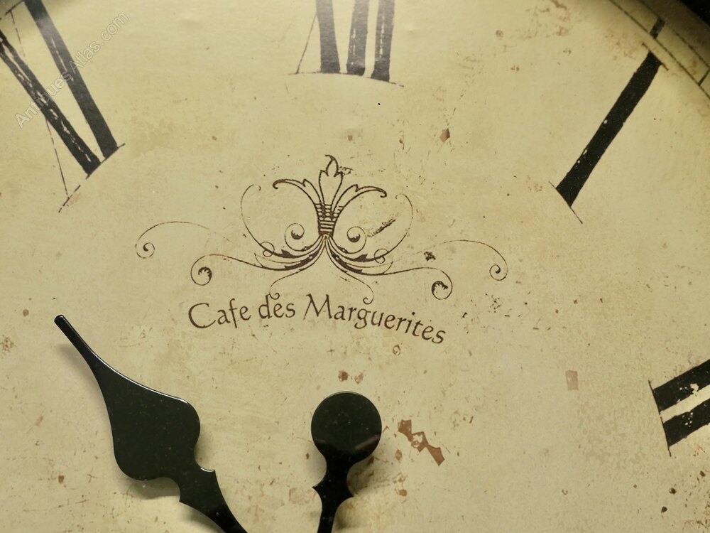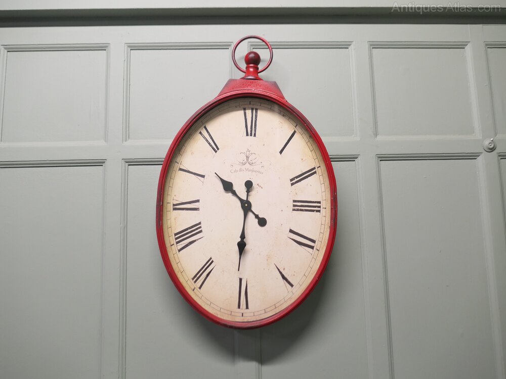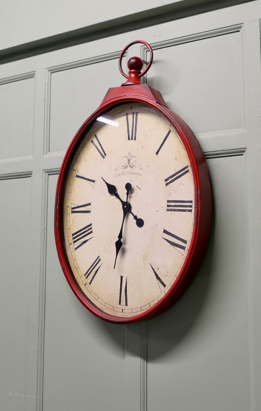 A Very Large Retro Chic French Bistro Wall ClockThis is a Large piece, the clock has an Oval Frame with White Face ands Black Hands, it is has a rather age weathered condition with a few blemishes