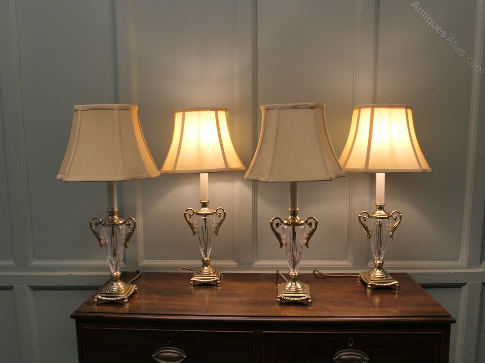 Set of 4 Hollywood Regency Glass Table Lamps