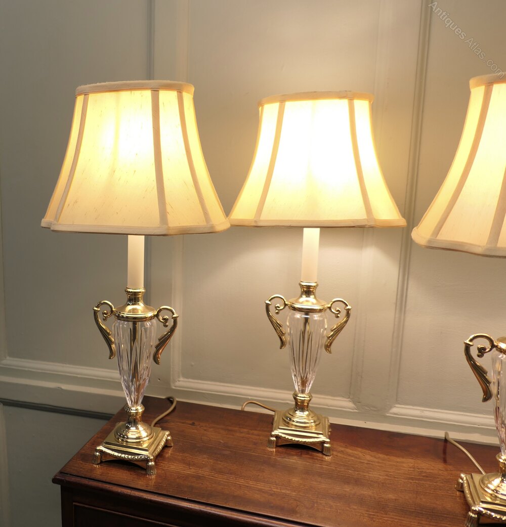 Set of 4 Hollywood Regency Glass Table LampsThis is a beautiful set of 4 individual glass table lamps decorated in Gold, lovely pieces all working and with their original shades
