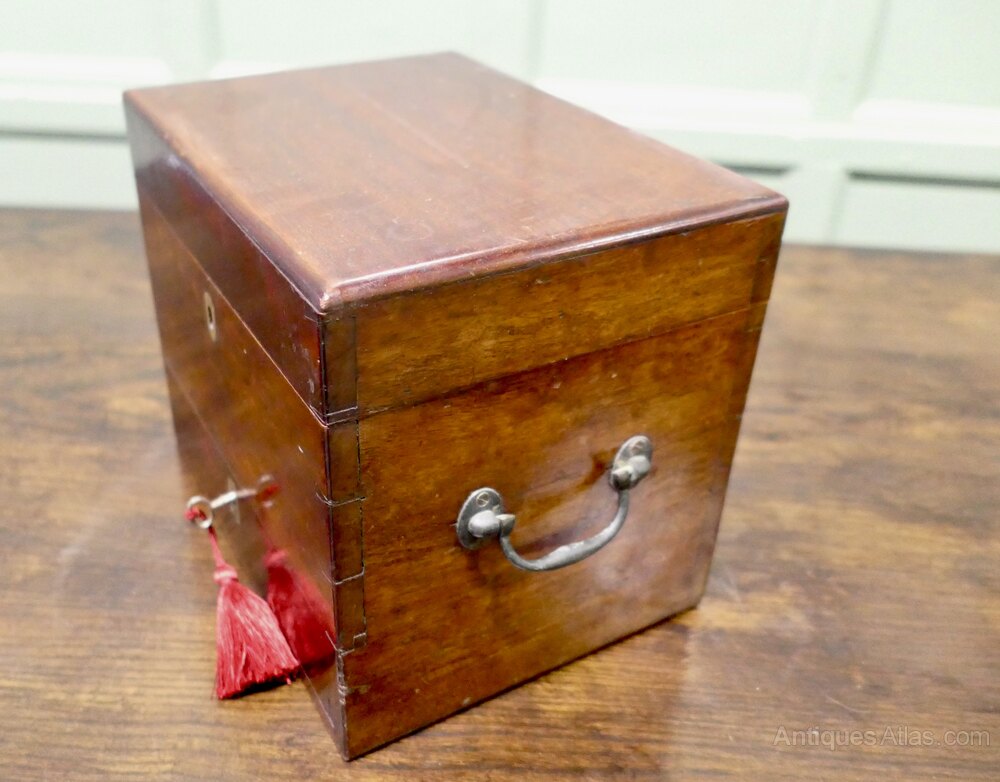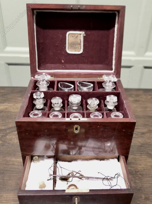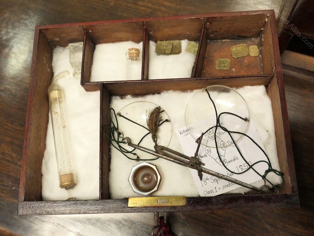 A Good Example of an Early Apothecary CabinetThis is a rare piece from the 1st half of the 19th century, inside, it has a fitted interior with both long and short medicine bottles, a scale, weights, including a dated provenance