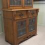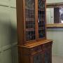 The Bookcase is in good sound condition, it has a replaced back and there is one small pane of red glass with a crack, this is very old damage and is not moving, it comes into 2 for transportation.