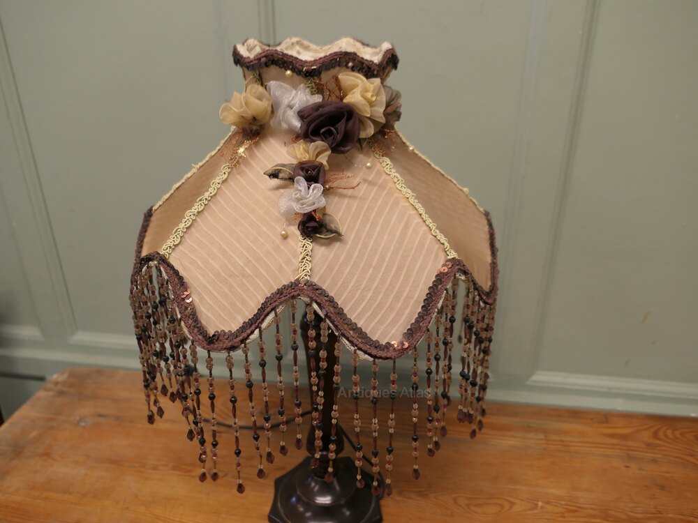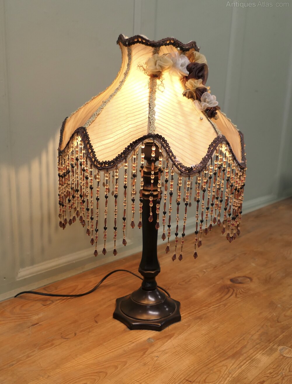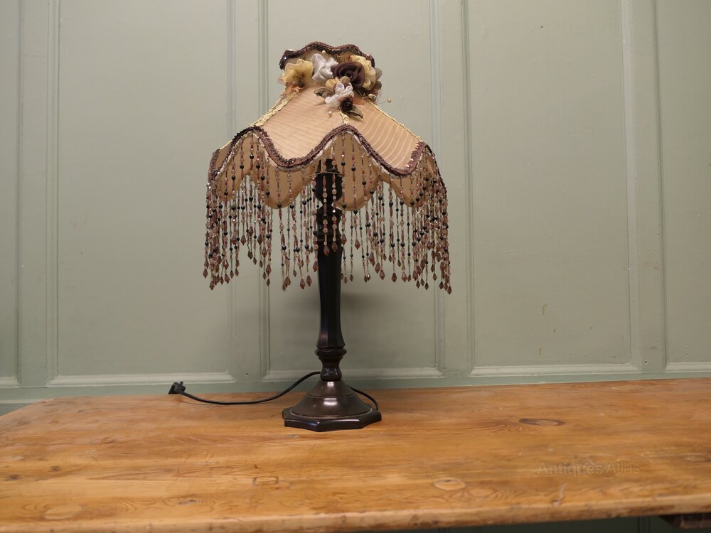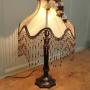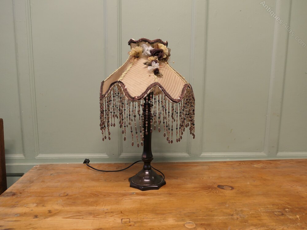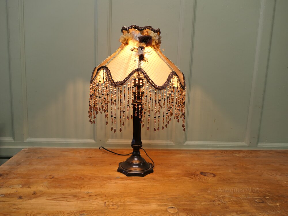 Tall Art Deco Bakelite Table Lamp with Beaded ShadeThis is a tall slender piece and it come with a extravagant scalloped beaded lampshade decked with flowers