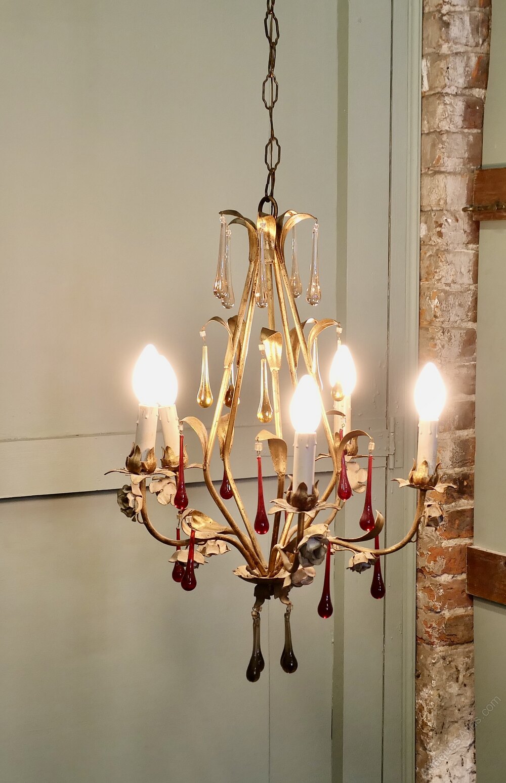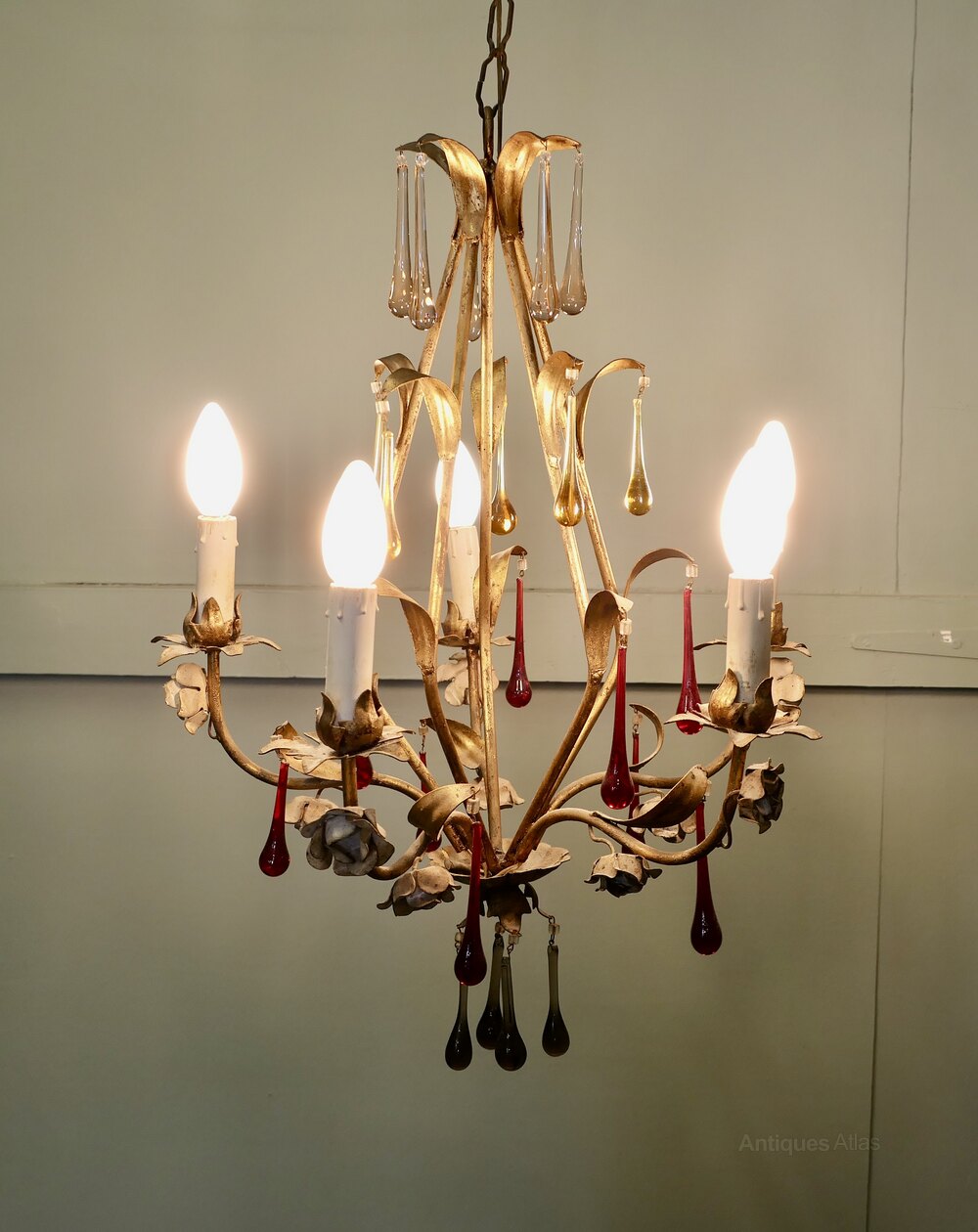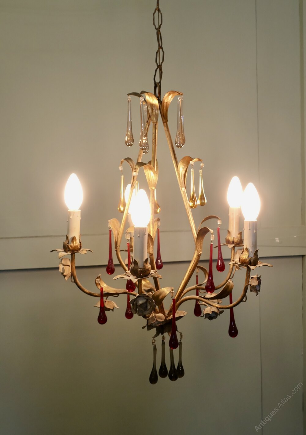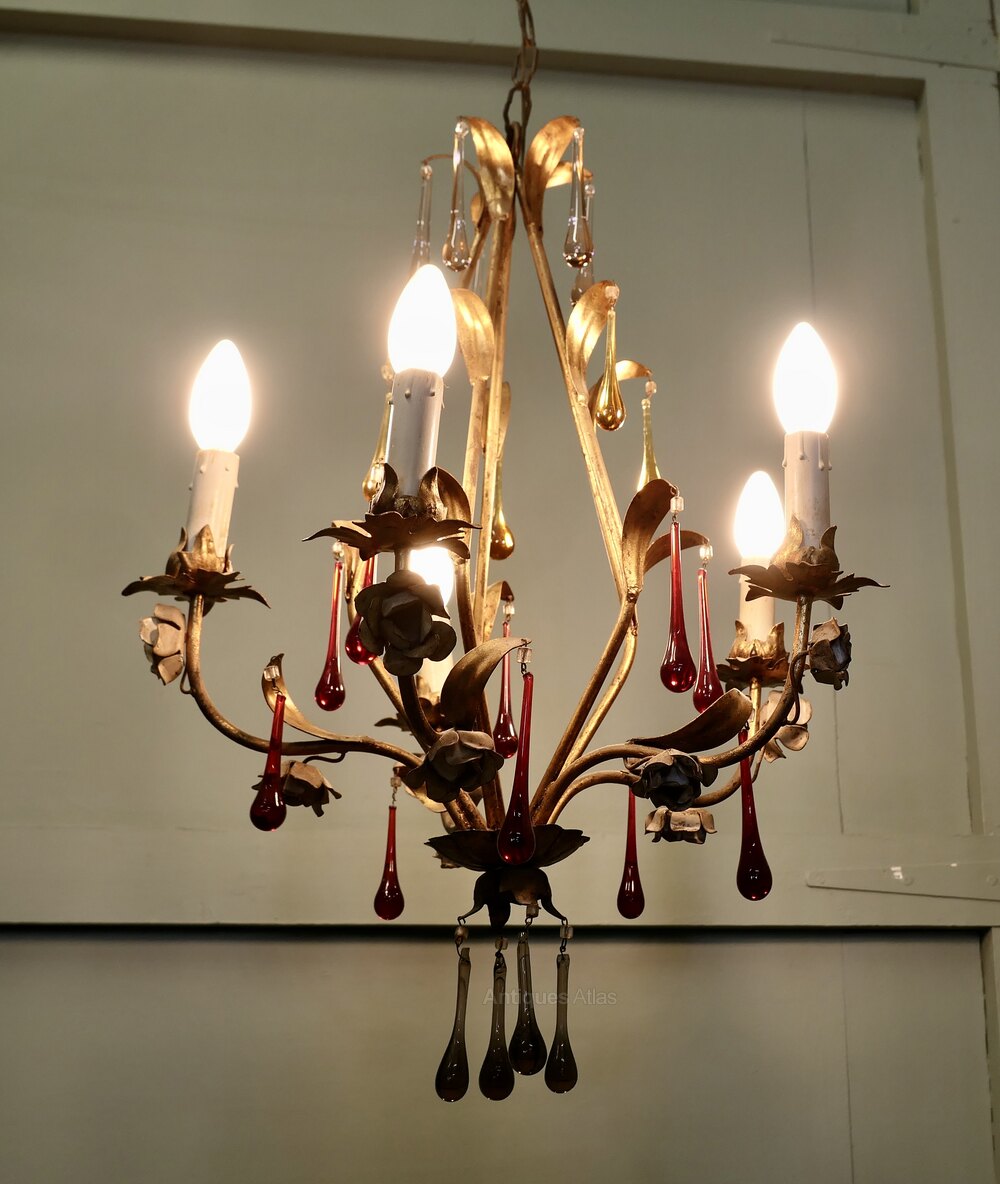 French Chandelier with Coloured Crystal Teardrops