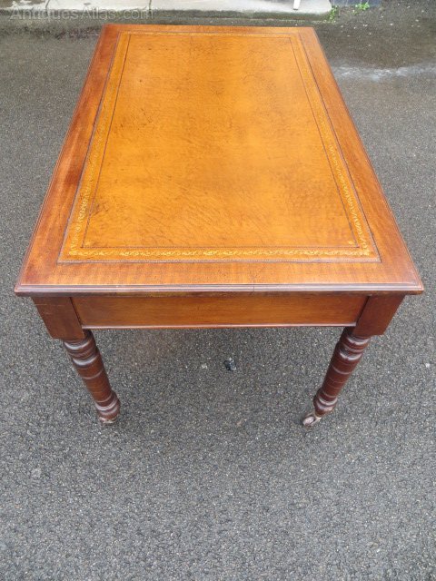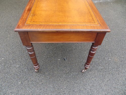 Antique Victorian Mahogany Writing Desk with Tooled Leather Insert .With Two Drawers to the front on turned legs 121 cm wide,75 cm deep ,75 cm highShipping information