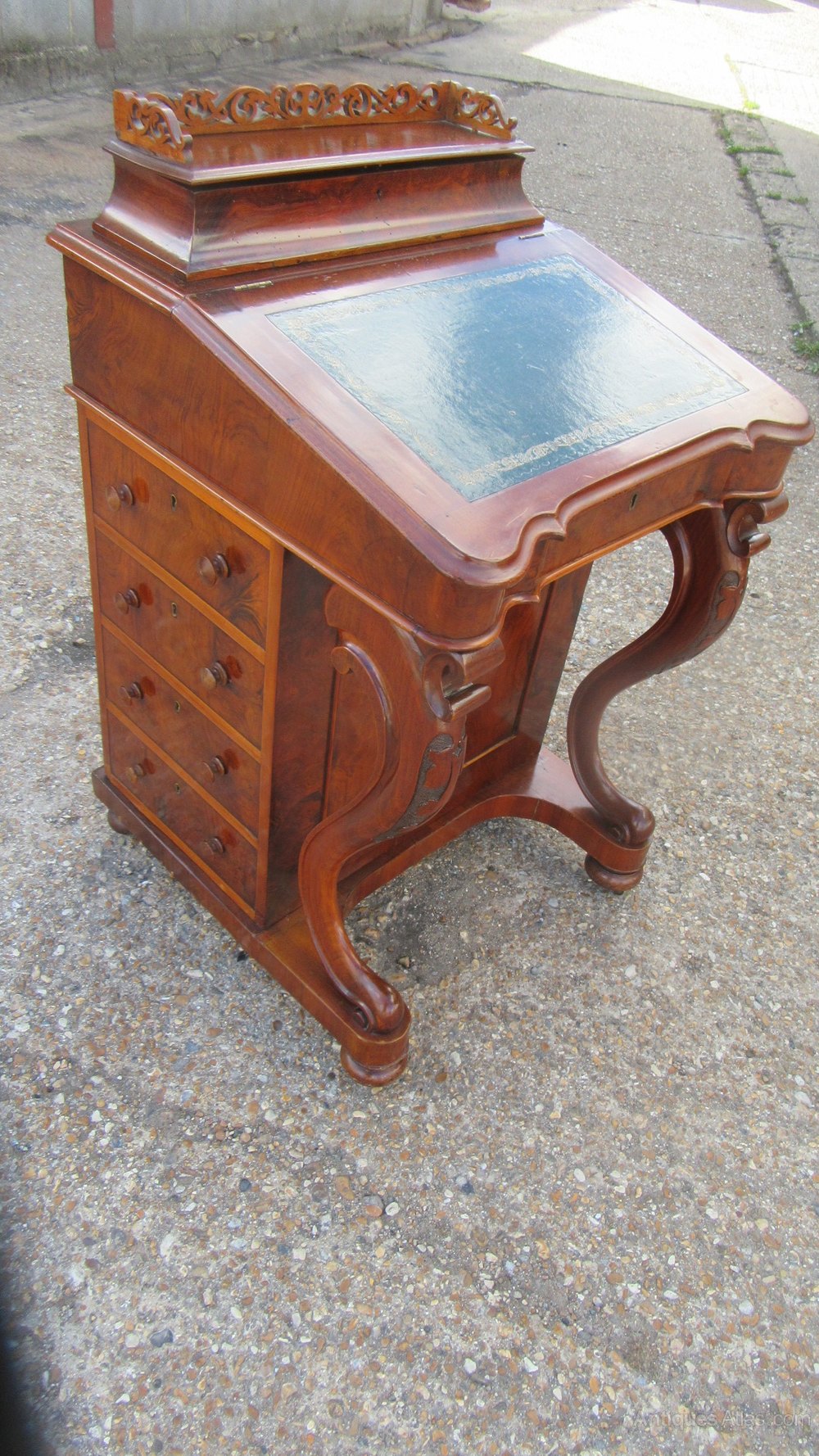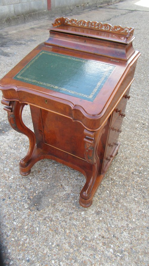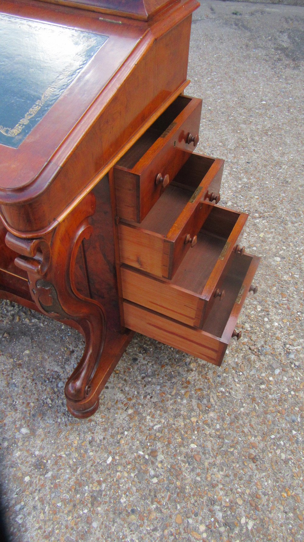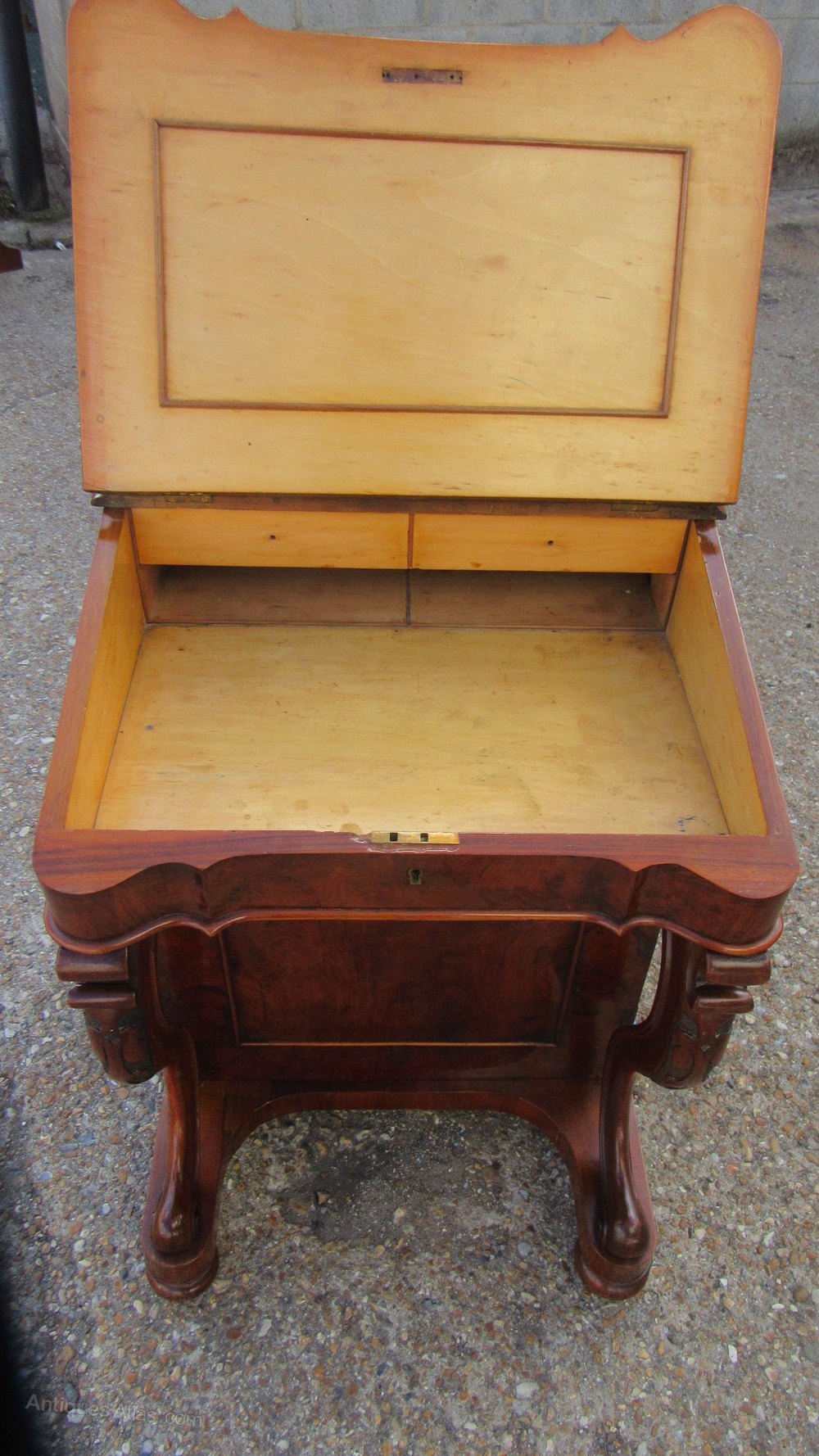 Antique Victorian Walnut Davenport with Four Drawers one Side Four Dummy Drawers the Other and Tooled Leather Top with lift up Lid .92 cm high 56 cm wide 56 cm deepShipping information