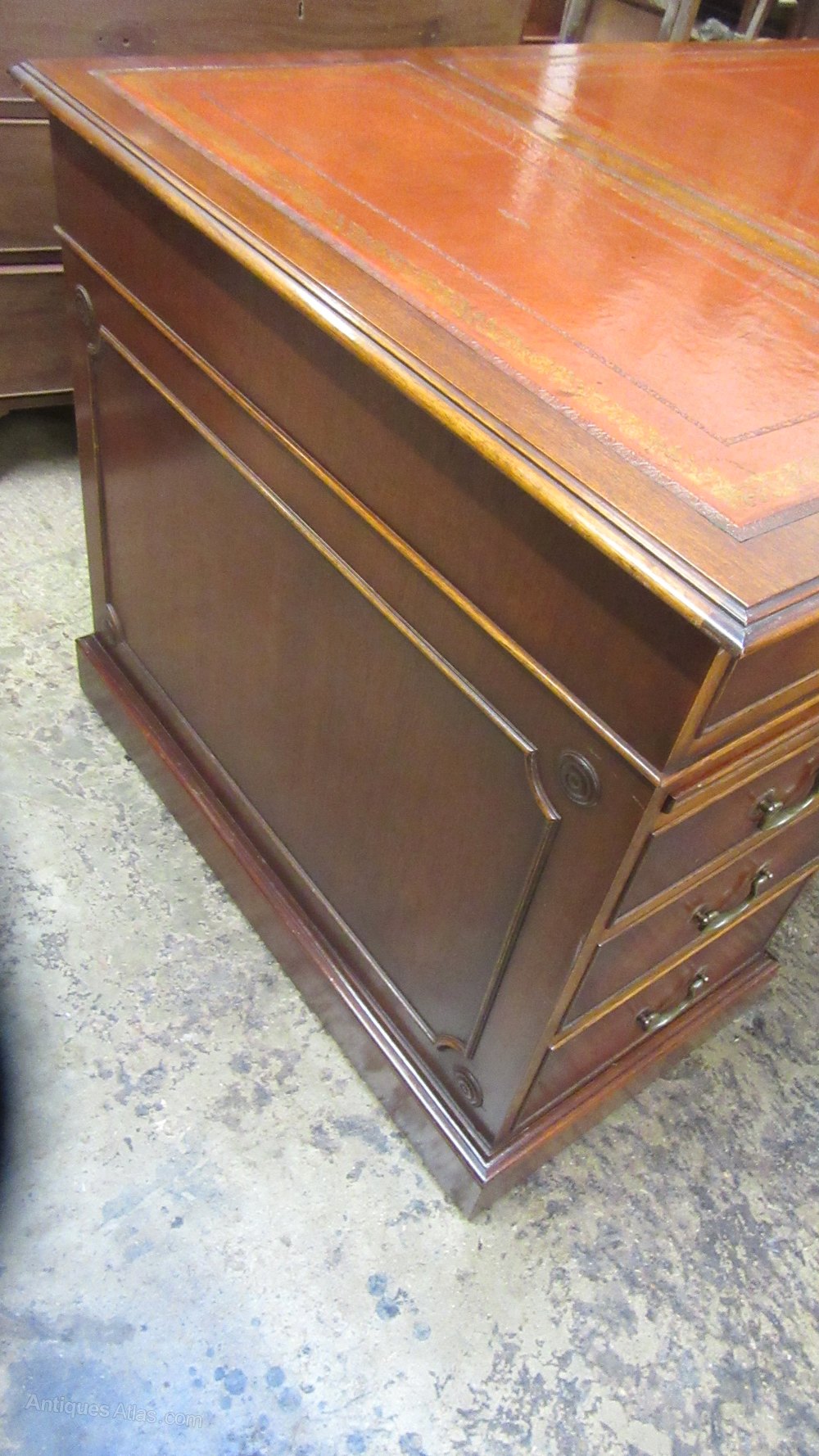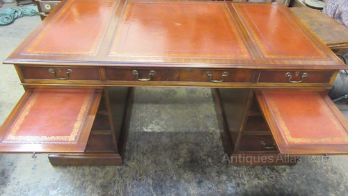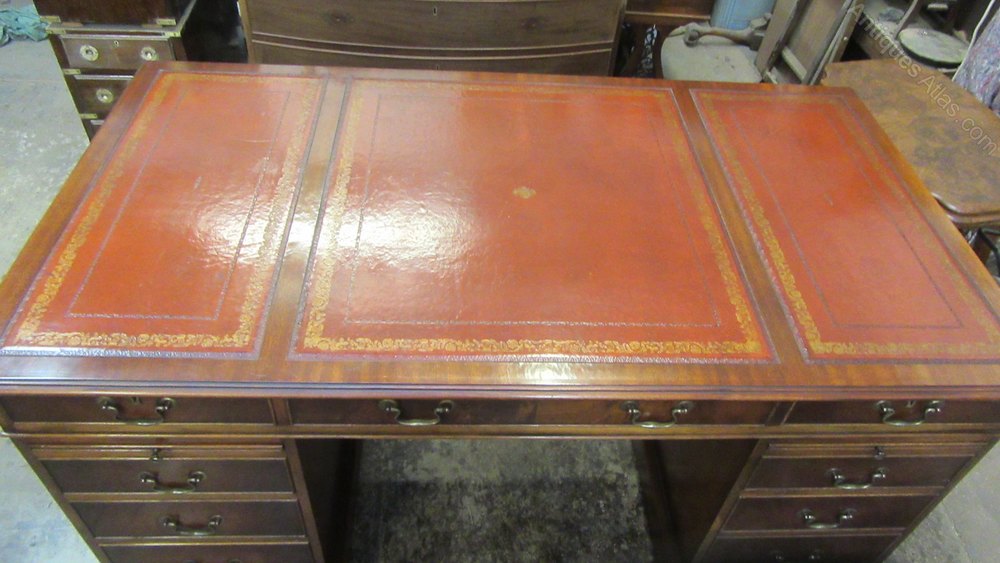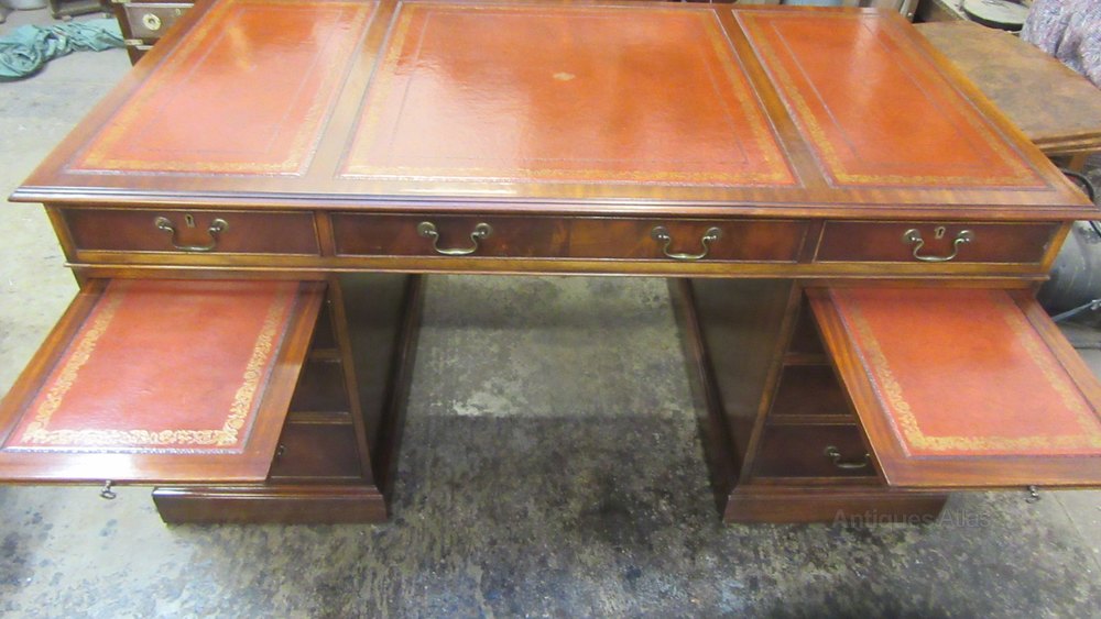 Vintage Regency Style Mahogany Writing Desk with Tooled Leather Insert ,Pull out slides either side 78 cm high 158 cm wide 87 cm deep This Desk splits into Three PiecesShipping information