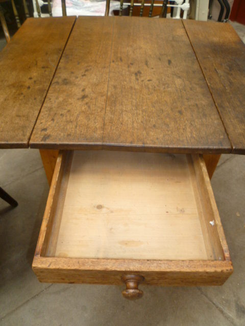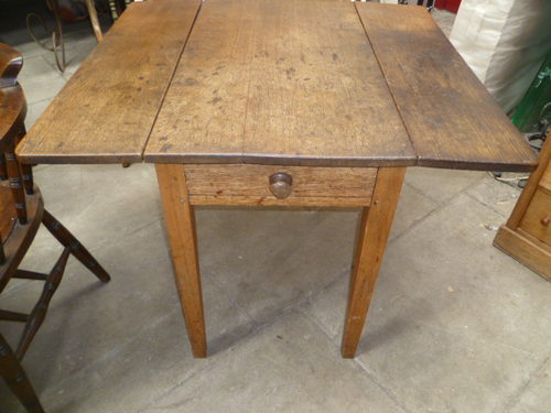 Antique country drop leaf pembroke dining table ,single drawer. Mixed wood oak top fruitwood legs.Shipping information