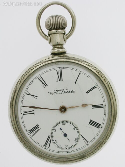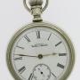 American Waltham Steel Open Face Pocket Watch 1930An American Waltham steel open face pocket watch, made in the USA in 1930. The white enamel dial has black Roman numerals with outer minute divisions. The dial has golden hands and a subsidiary second’s dial at the six. The dial is signed: American Waltham Watch Co. The movement is in great working condition. The watch lies in a steel open face case with a smooth finish.