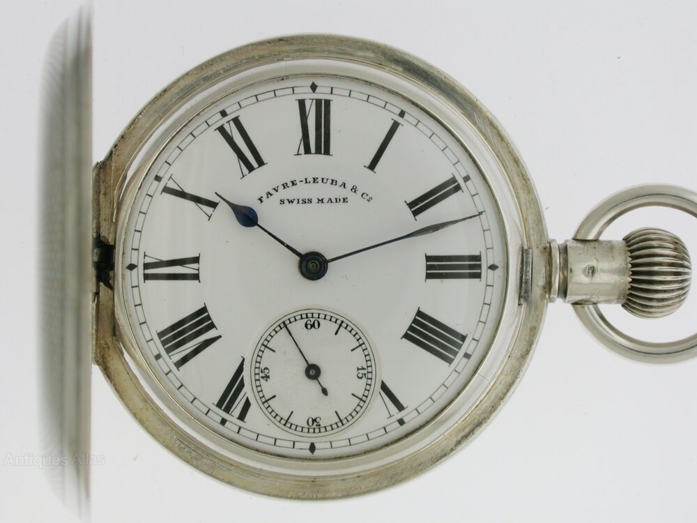Silver 0.935 Favre-Leuba & Co Full hunter Pocket Watch Swiss 1895An antique silver 0.935 Favre-Leuba & Co Full hunter pocket watch made in Switzerland in 1895. The pocket watch comes in a nice original Favre-Leuba box.