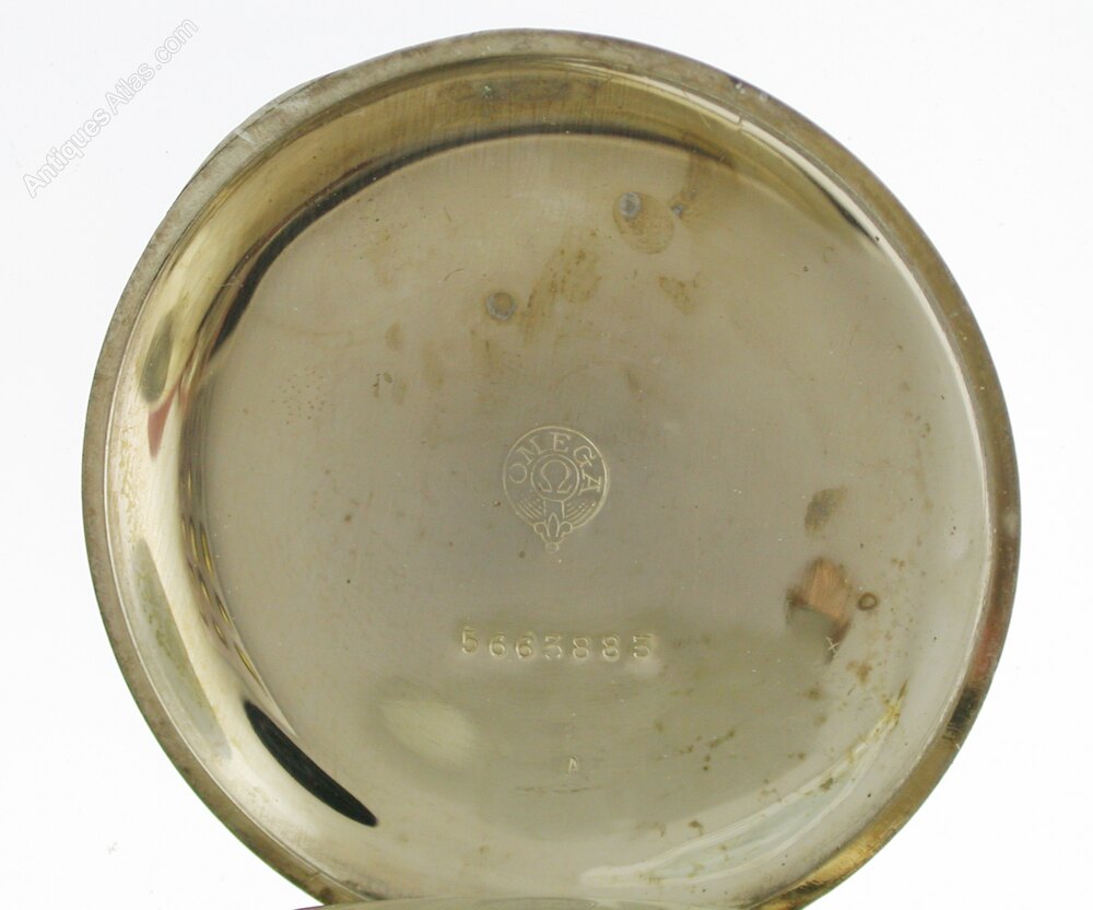 MOVEMENT: The anchor lever escapement movement has a plain cock with polished steel regulator and blued steel over coil hairspring. The movement is signed "Omega" and numbered:4938629. The movement is in good working condition however, we cannot guarantee accuracy for an antique pocket watch.