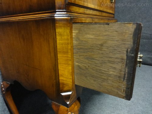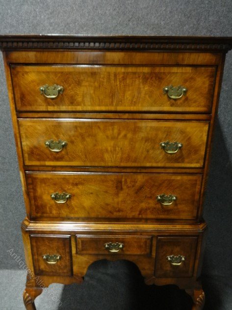 A superb quality walnut chest on stand, with oak linings, brass handles, canted corners, excellent colour and condition, comes into two for ease of transport.58" high