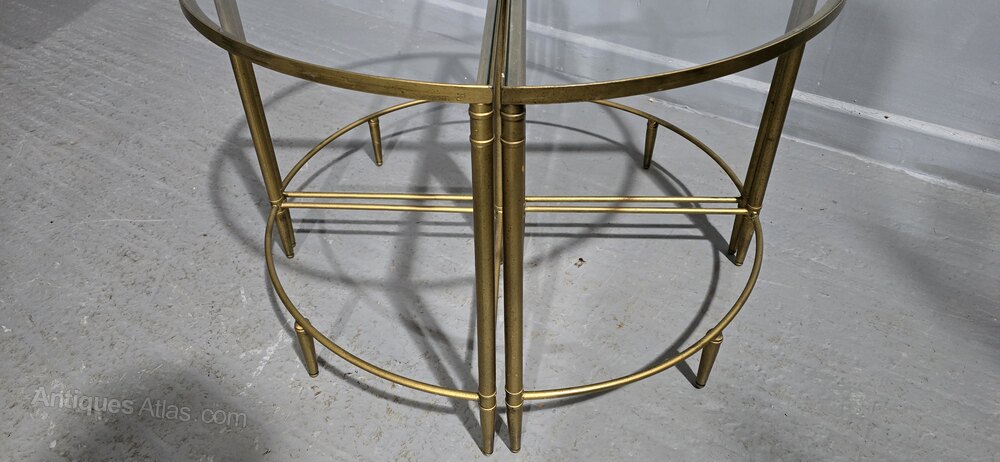 A very good quality French Art Deco gilt metal nest of four tables making a circular table, in overall very good condition.20.5" high