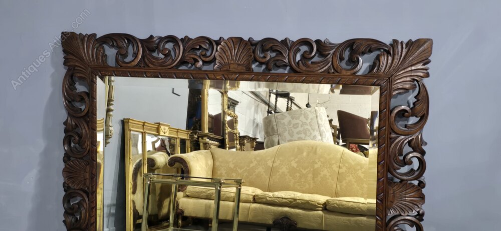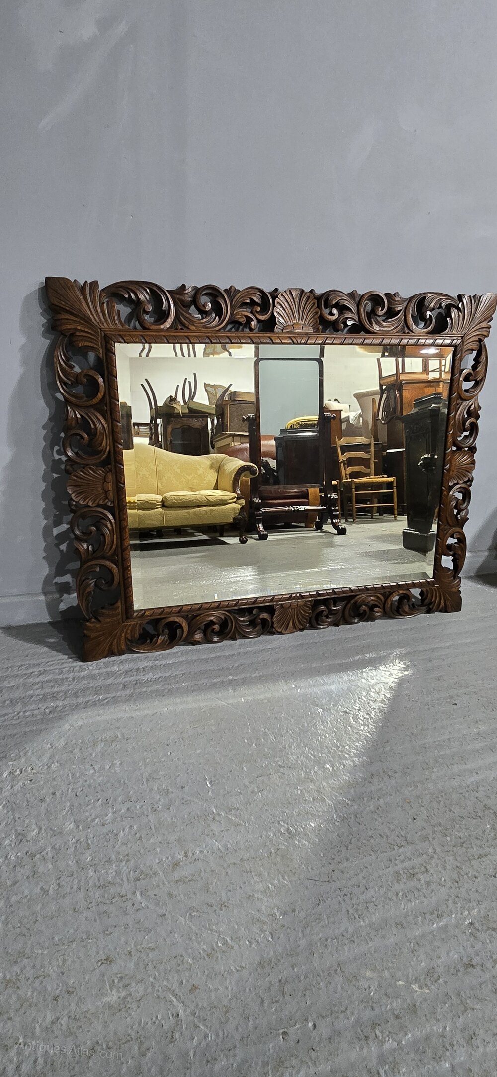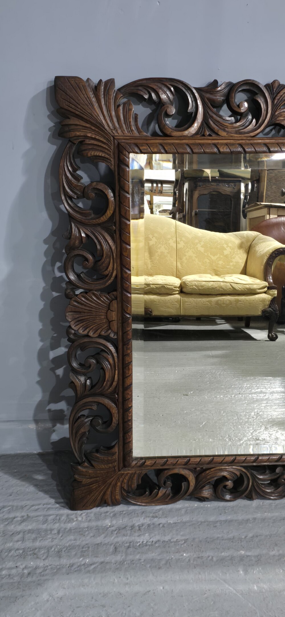 A very nice large carved oak cushion frame with original bevelled plate mirror, Can be hung portrait or landscape, excellent quality and ready to hang.41" x 51"