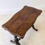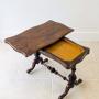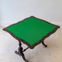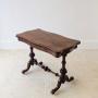 An impressive mid-Victorian card table crafted in richly figured rosewood, the elegantly shaped top swivelling and folding open to reveal a baize-lined playing surface framed in rosewood. The table stands on a twin pedestal and stretcher base with bold carved details, exemplifying the accomplished cabinet work of the mid-19th century.The rosewood has mellowed beautifully, developing a deep lustrous tone that gives the piece real presence. When closed it serves naturally as a side table or console in a hallway or living space, and when required it opens for use as a sociable card table.