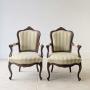 Pair of Victorian Walnut Louis XV Style Armchairs