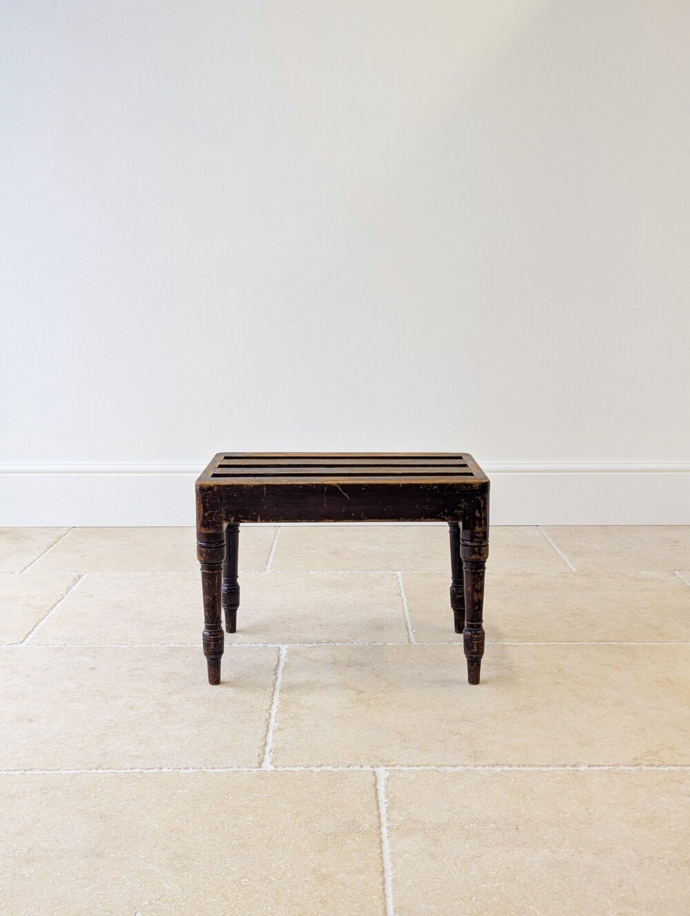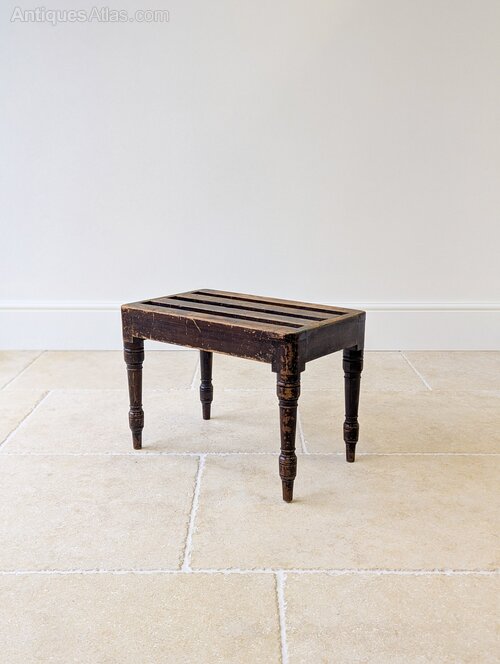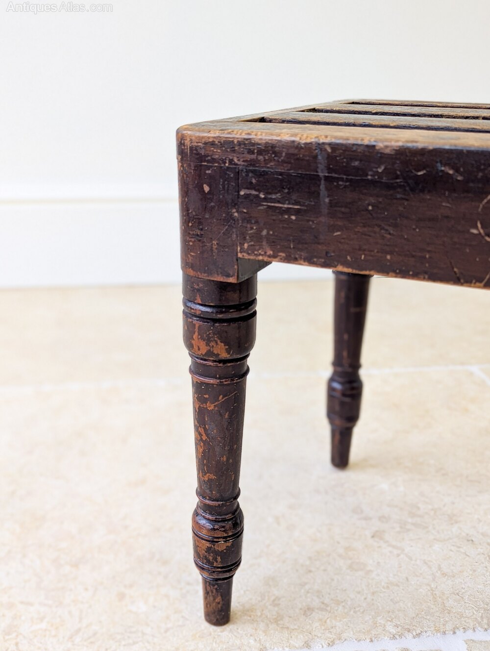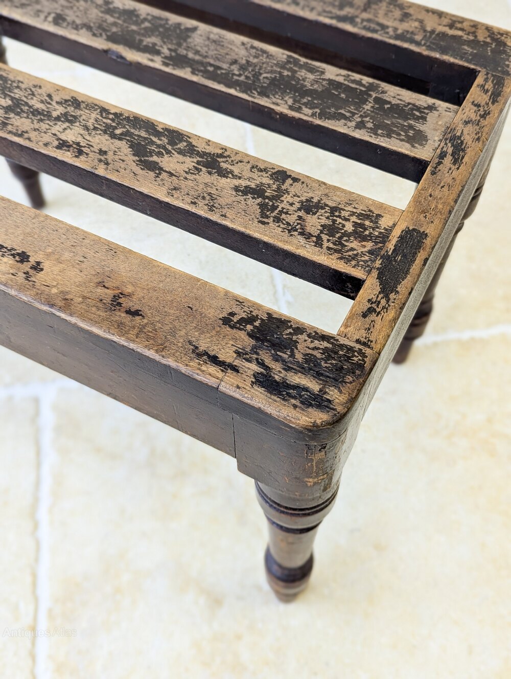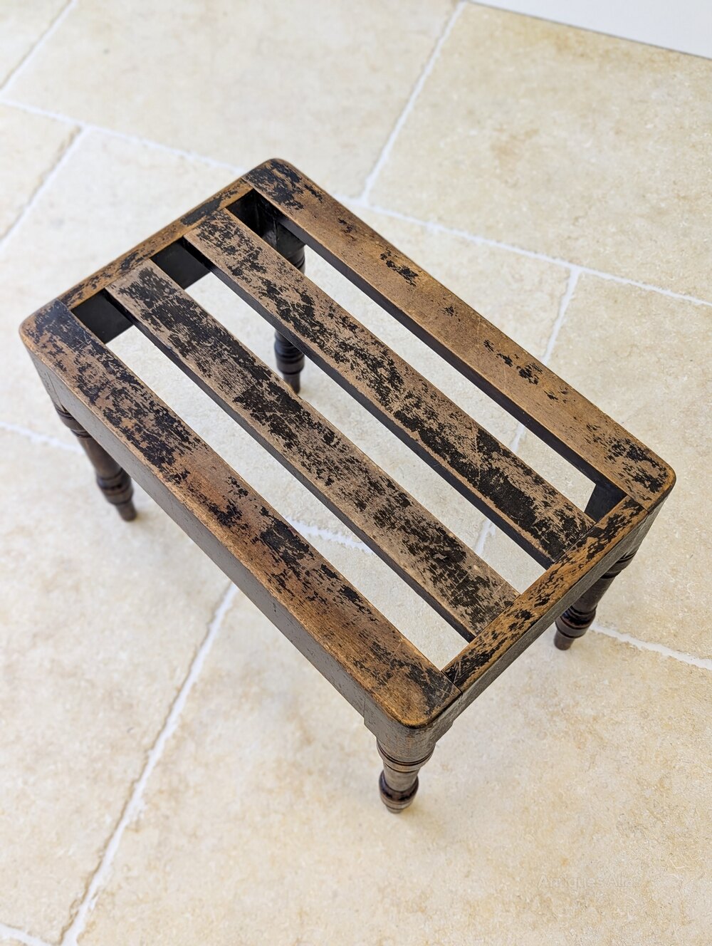 A quality Victorian luggage stand crafted in beech, stamped and labelled Brown & Lamont of Chester. The slatted platform top is formed with broad open rails set within a substantial frame, standing on turned legs.A practical piece, but also a perfect decorative accent in a bedroom or dressing room.