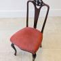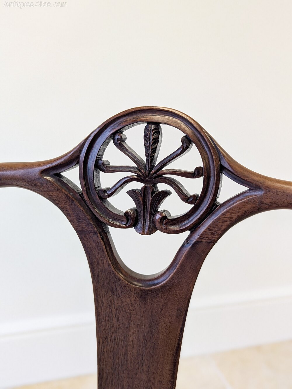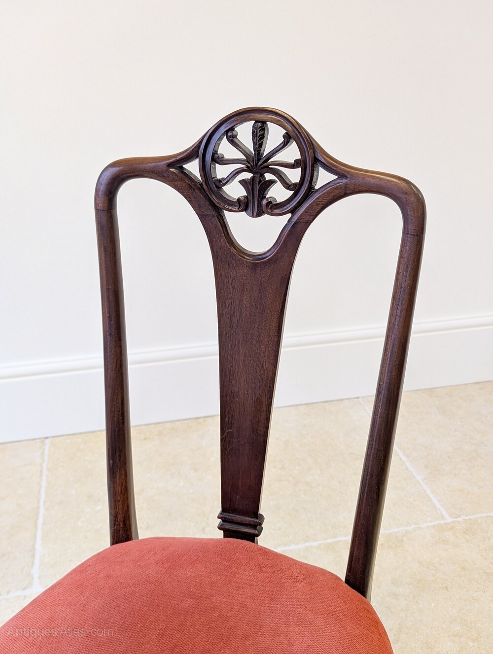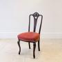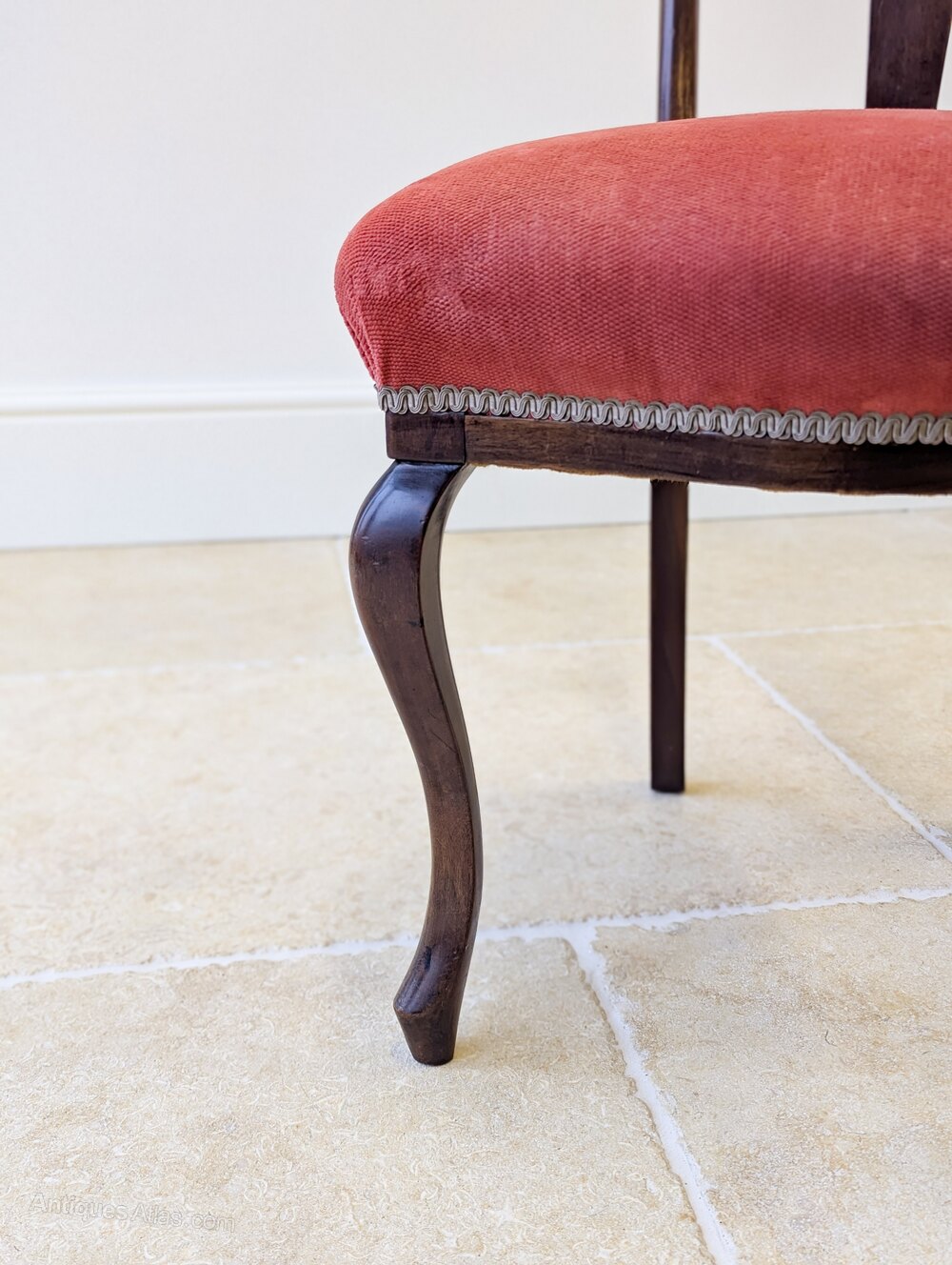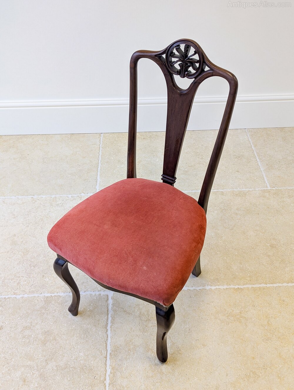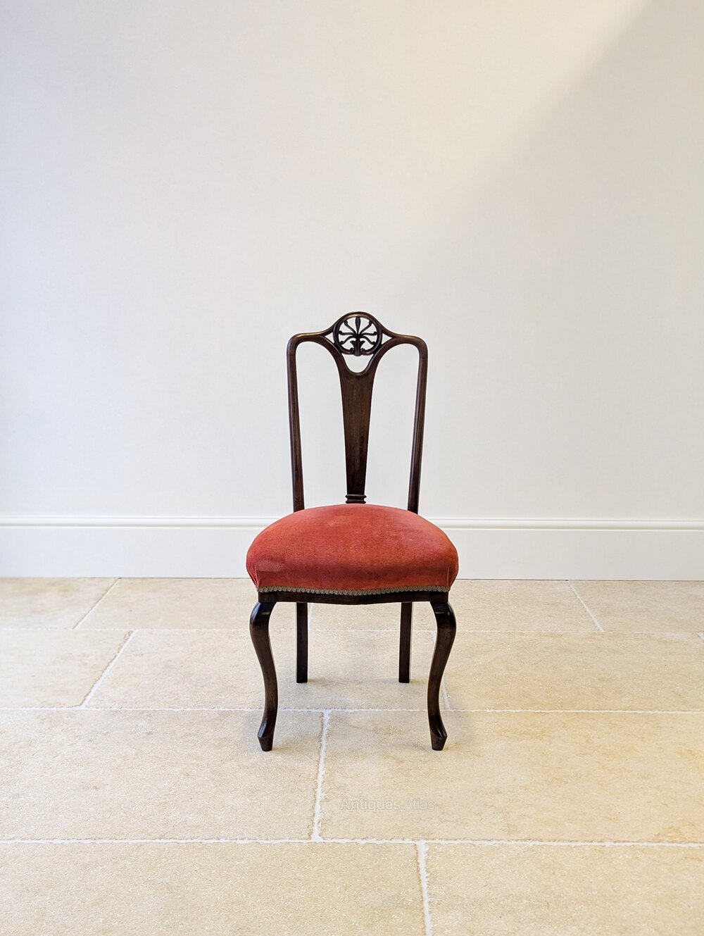 A George III mahogany side chair featuring a pierced foliate roundel crest within a shaped top rail and tapering splat, set over an upholstered serpentine seat raised on cabriole front legs.A well-made 18th century side chair of sensible scale, equally usable pulled up to a writing table, as a dressing chair or as a single occasional chair in a hall or landing.
