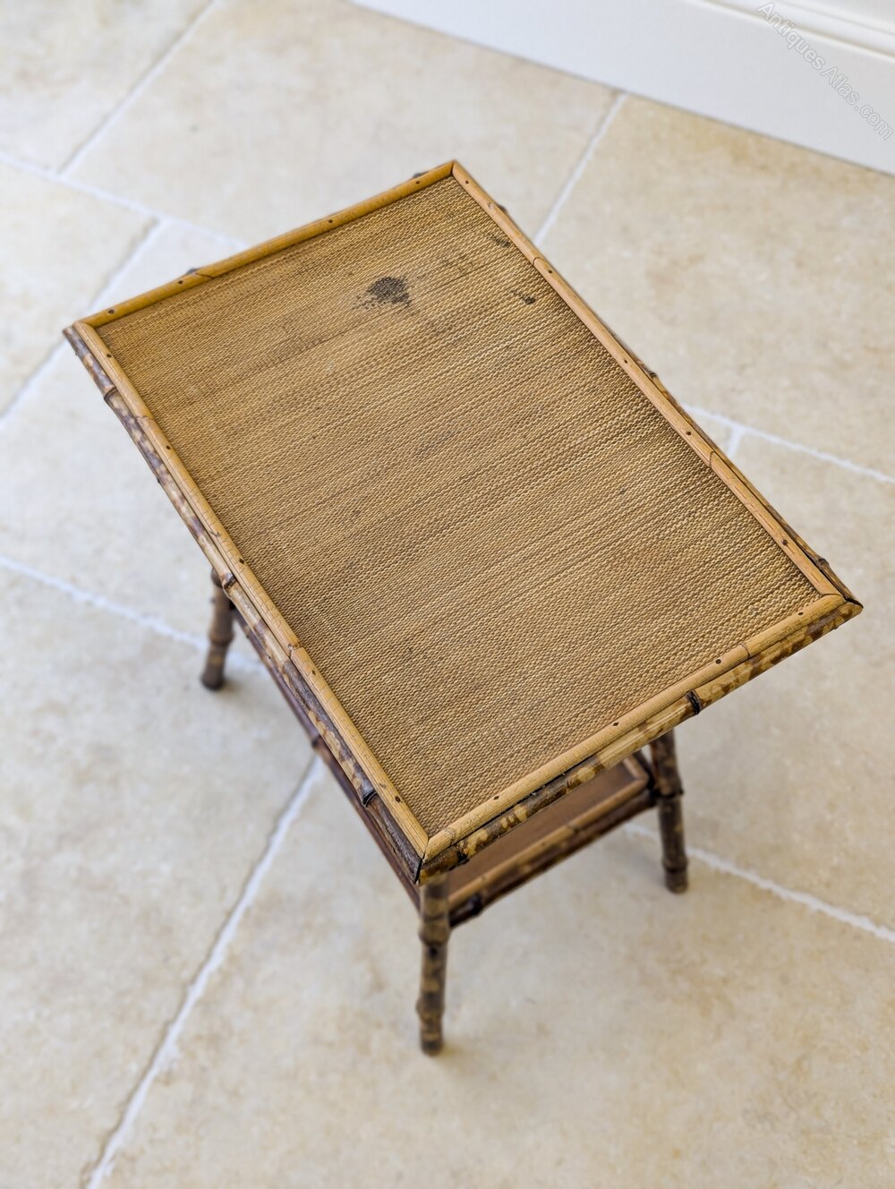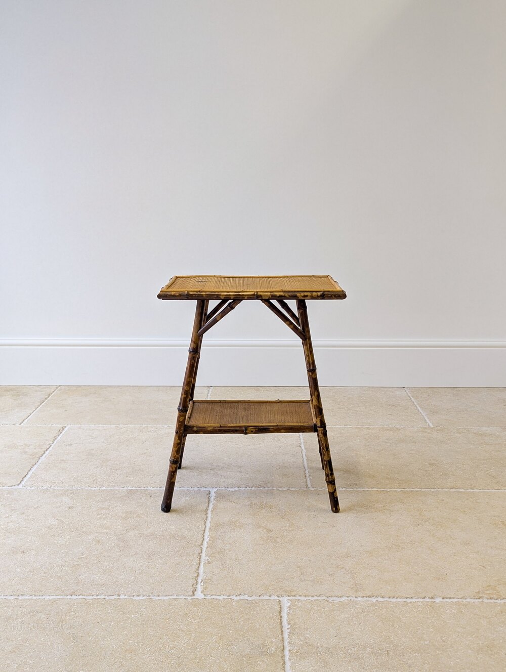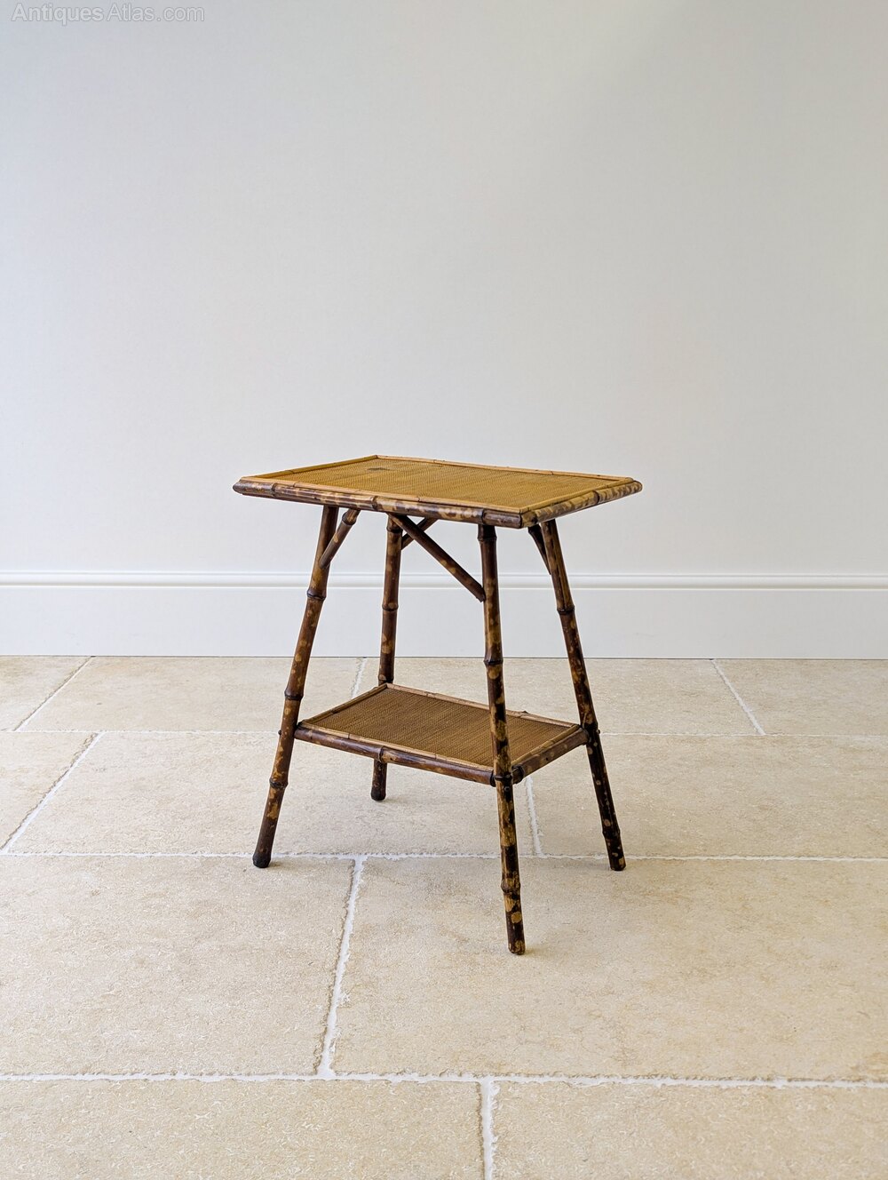 A simple, understated late Victorian bamboo occasional table of rectangular form raised on gently splayed legs united by a lower tier and reinforced with typical decorative cross braces below the tabletop. Wonderfully original with excellent colour, showcasing the fashionable Aesthetic Movement’s Anglo-Japanese influence of the period.Presented in very good antique condition with only some minor wear to the original woven surfaces consistent with age and use. Structurally all in good order, clean and ready to place in the home.