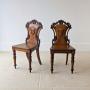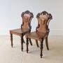 Pair of Antique Victorian Oak Hall Chairs c.1870