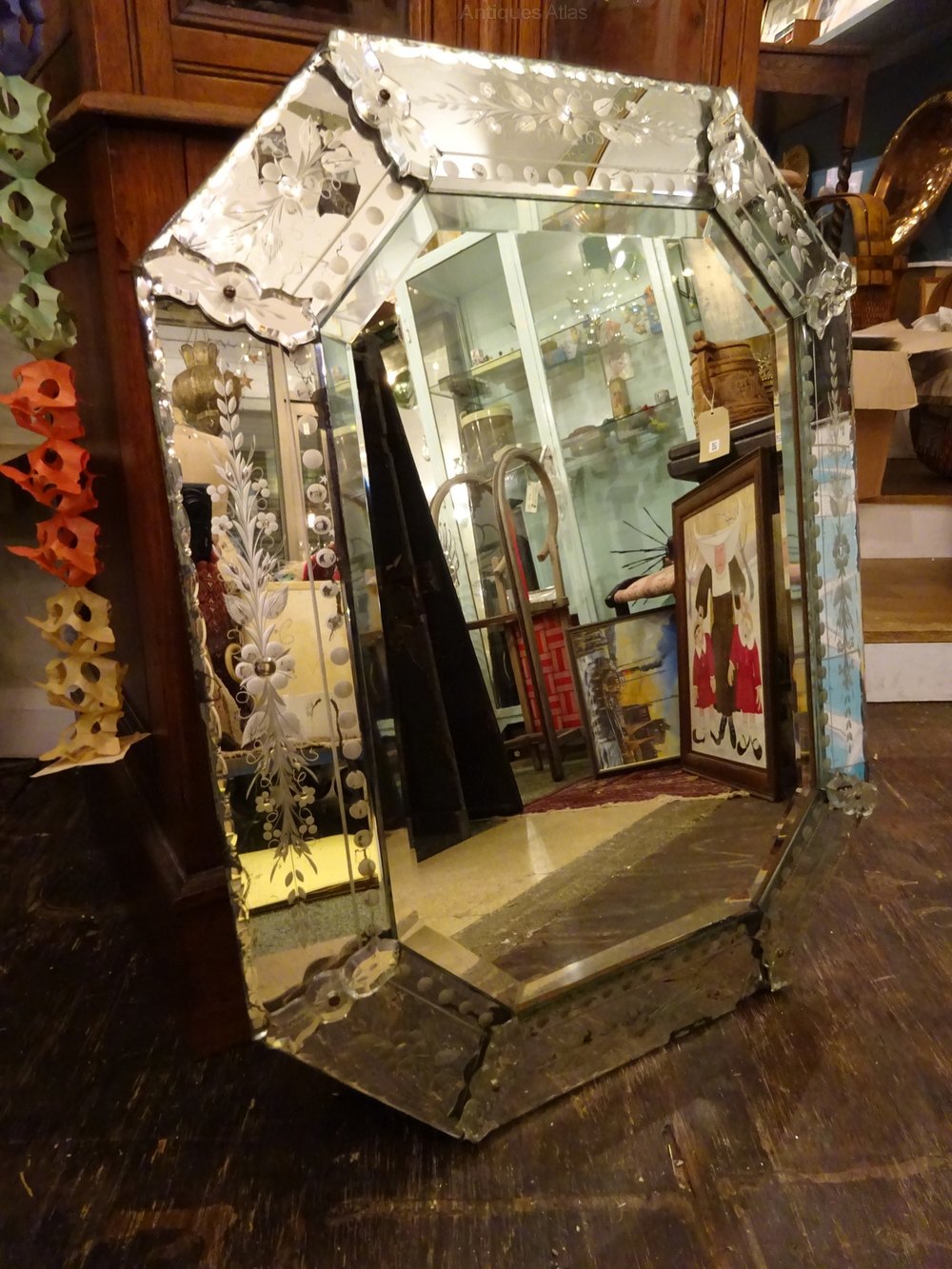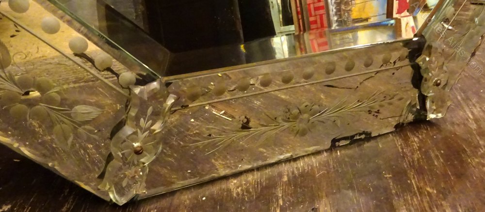 Vintage Venetian Mercury Glass Cushioned Mirror
