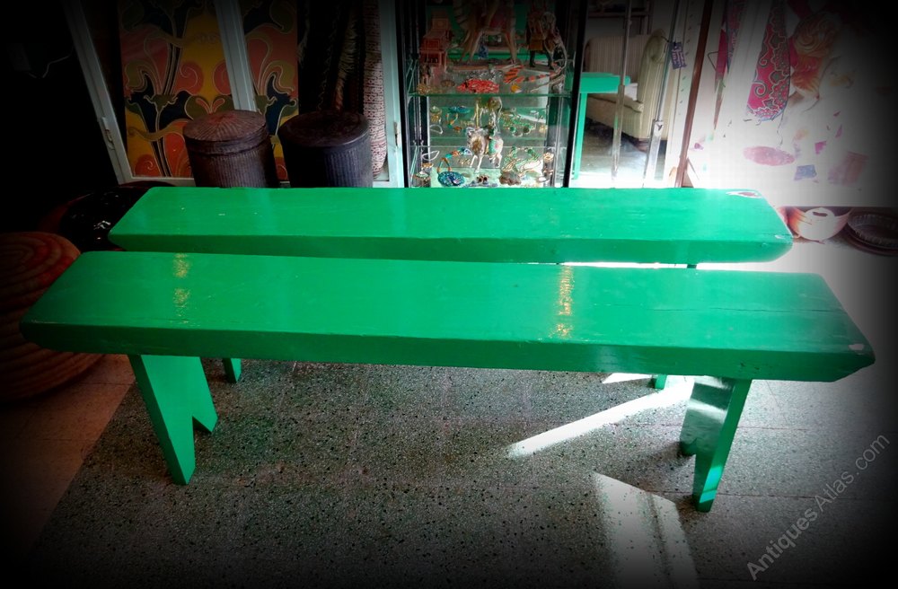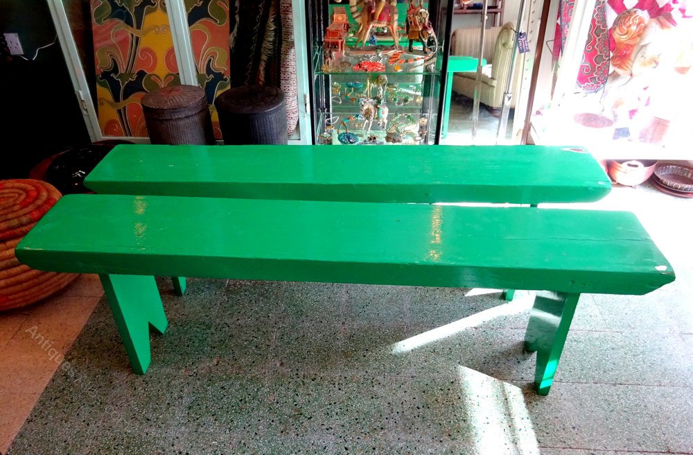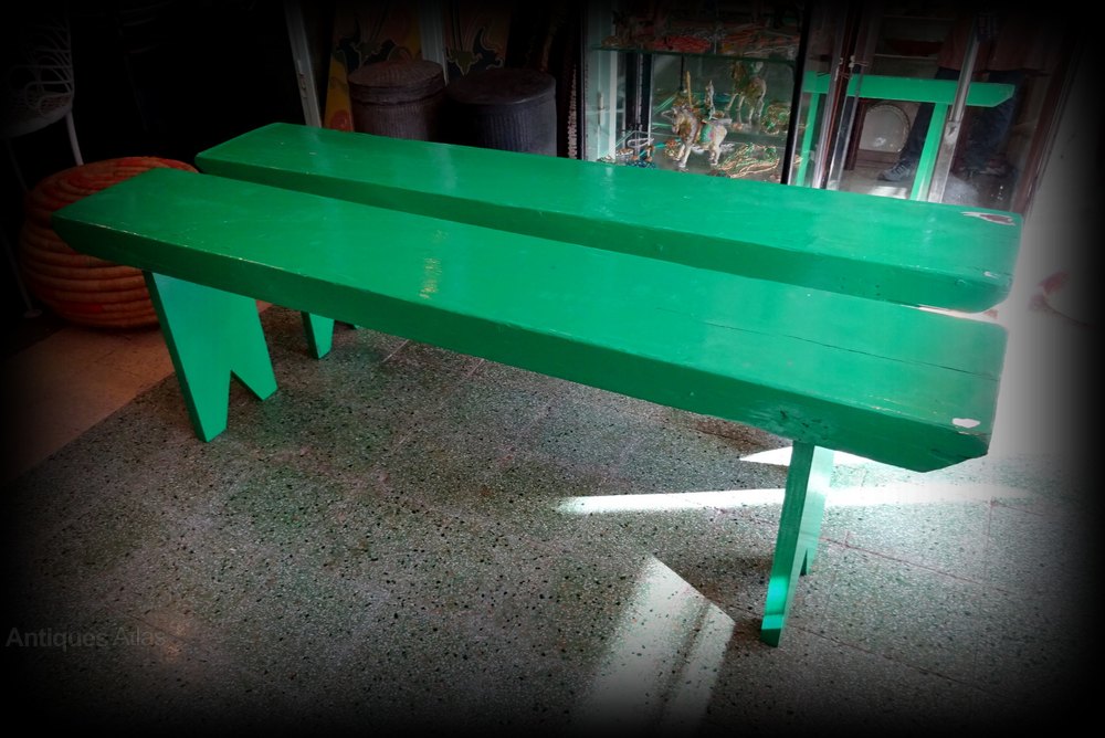 Pair of Vintage Green Painted Pine Benches BenchDate1960s
