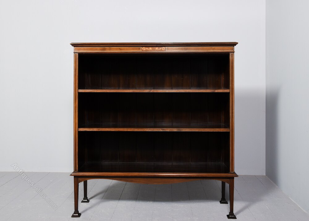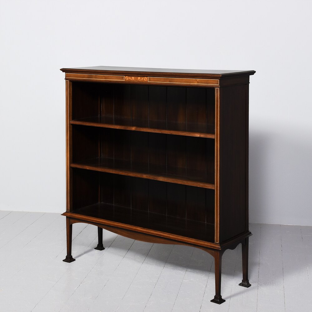 Art Nouveau Style Inlaid Mahogany Open Bookcase