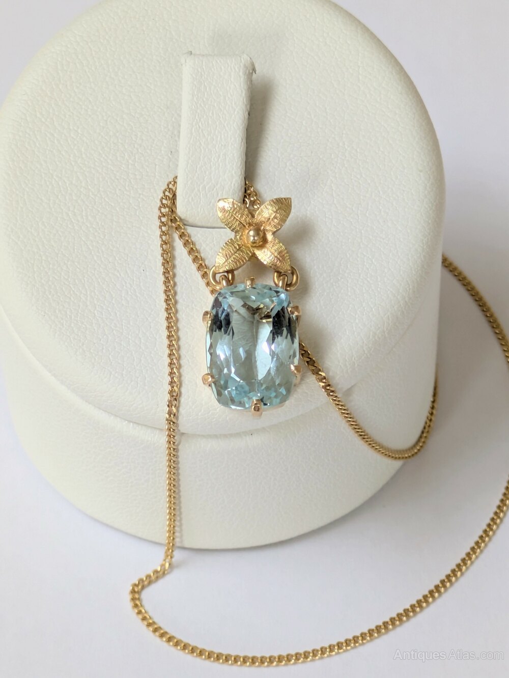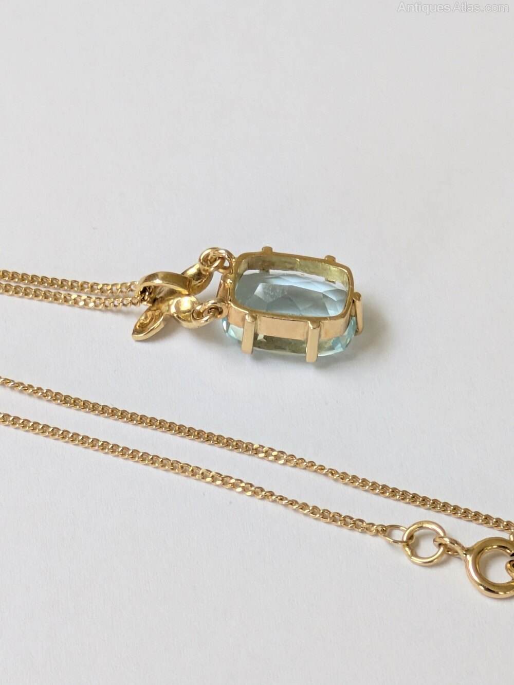 18ct Gold aquamarine pendant & chainAquamarine 14 mm x 9 mm