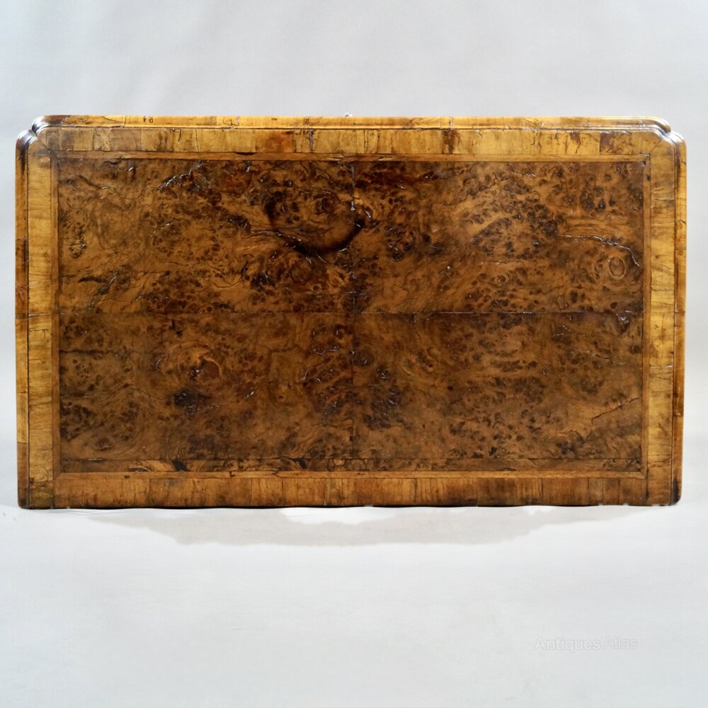 A rare George I, Burr oak knee-hole desk. Raised on bracket feet with seven oak lined drawers and knee-hole cupboard, all with original handles, and above a cross and feather banded top with molded edge and re-entrant corners. The desk is constructed in highly decorative burr oak which has adopted a lovely mellow colour. In very good and original condition. 830mm high, 850mm wide and 490mm deep. English. Circa 1725.W J Gravener Antiques is a family owned business, started in 1963 by William who was joined by son, Mark in 1981 and continues today with the same ethos of dealing in fine quality English and Continental furniture, mirrors and decorative objects, from the 18th & 19th centuries. Now under the stewardship of Mark and his wife, Louise, we take pride in maintaining the high standards which William set more than 50 years ago.