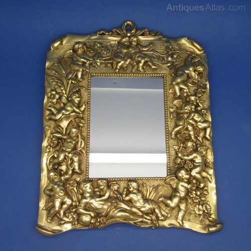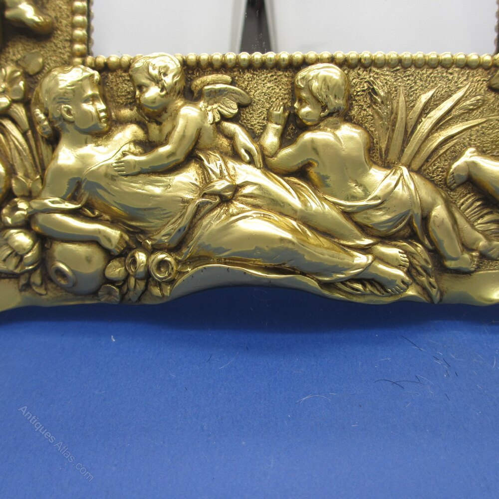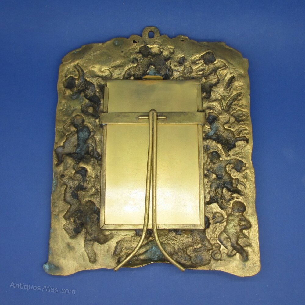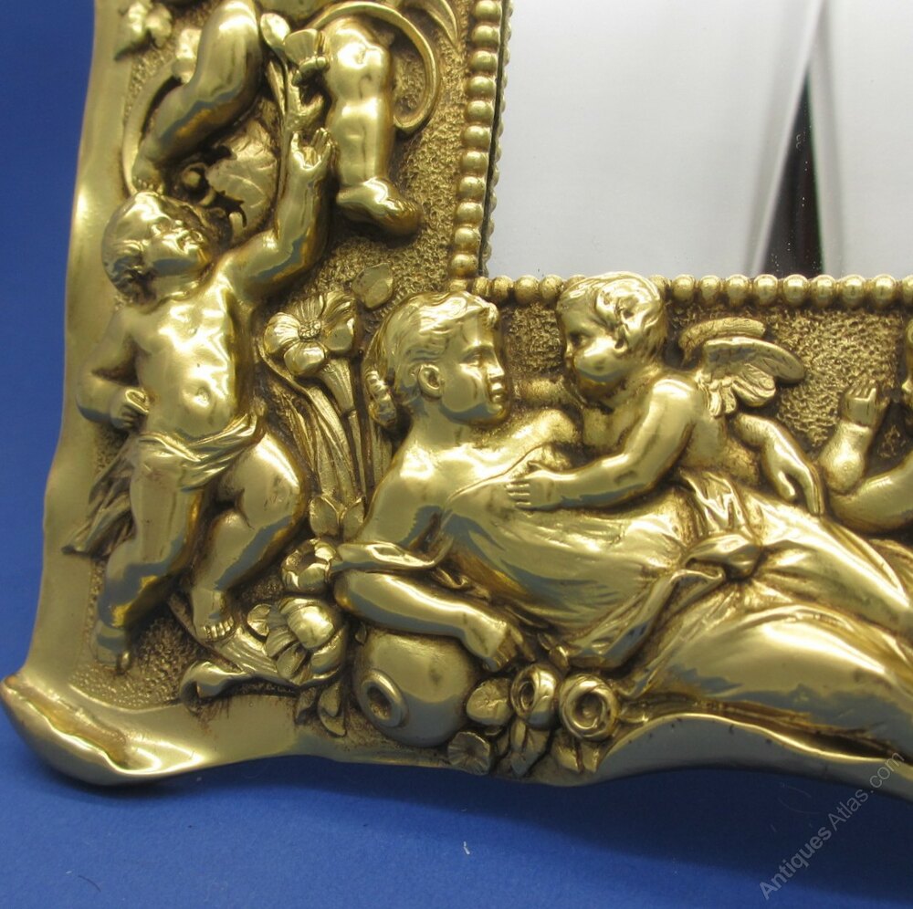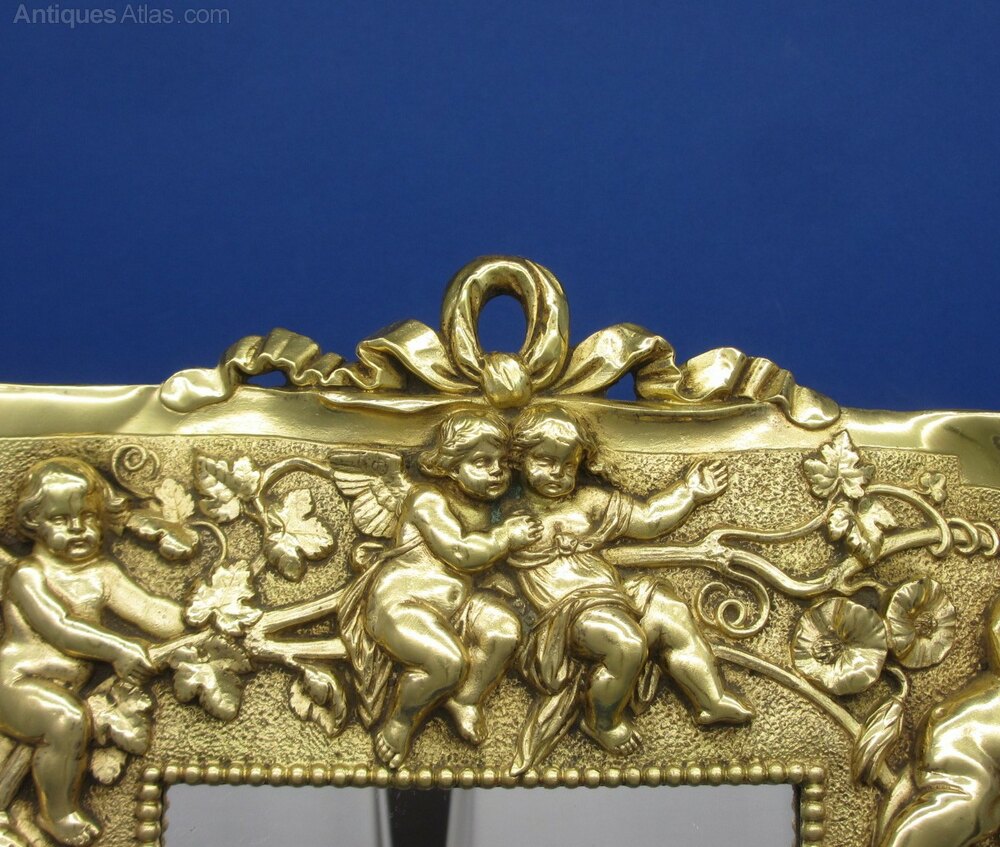 This is an excellent quality 19th Century Cast Gilt Metal Mirror/Picture Frame. The frame features Cherubs and Classical Figures around the frame surmounted with a bow. The rear has a slide out section for access to the mirror. The frame could easily be converted to a Photo Frame with the insertion of replacement glass.The Frame measures 295mm high x 230 width with the aperture measuring 138mm high x 100mm in width.