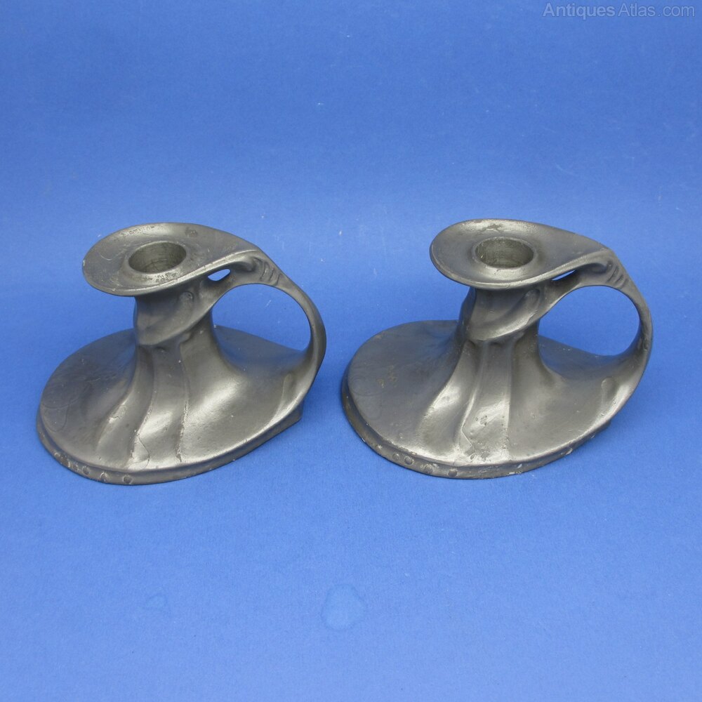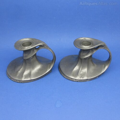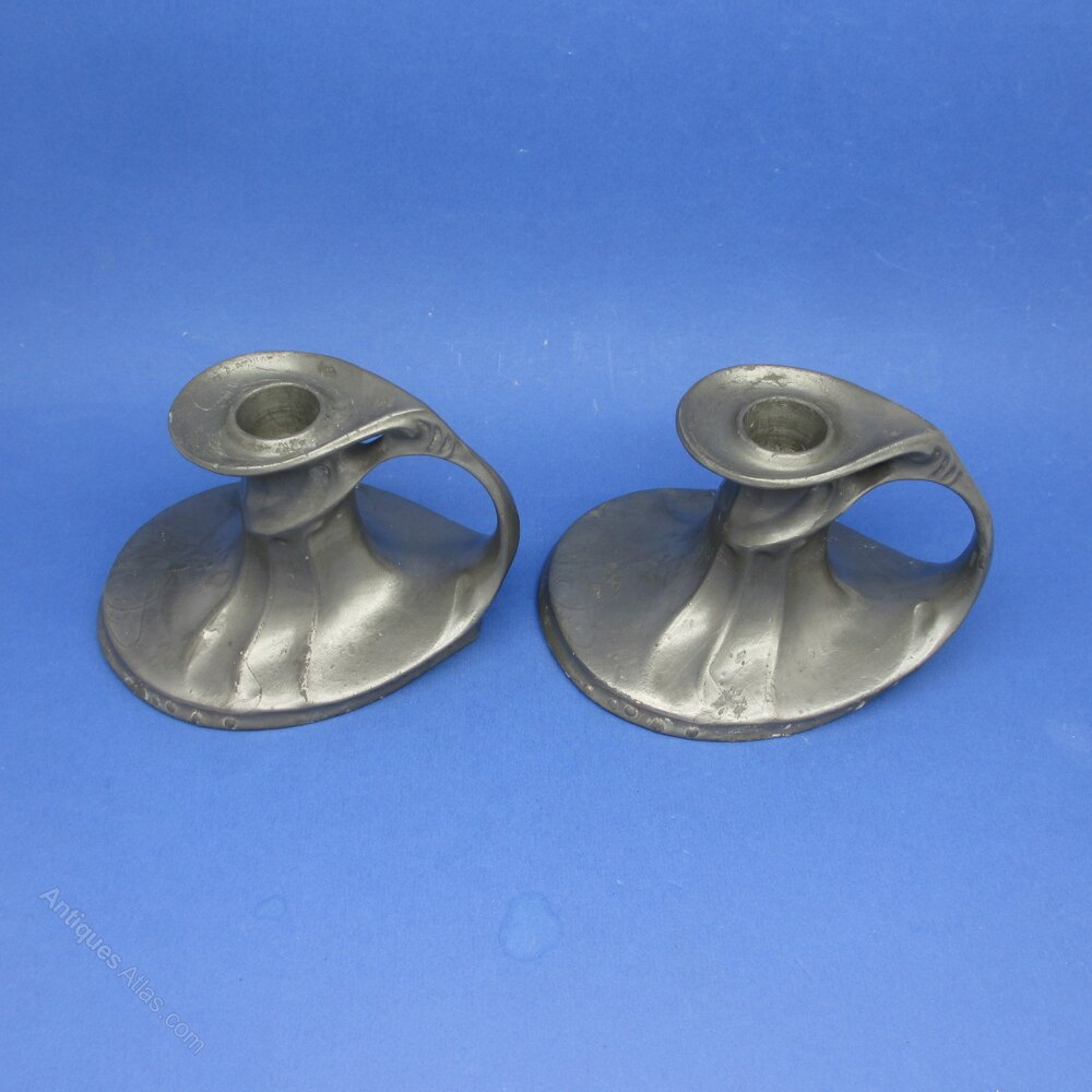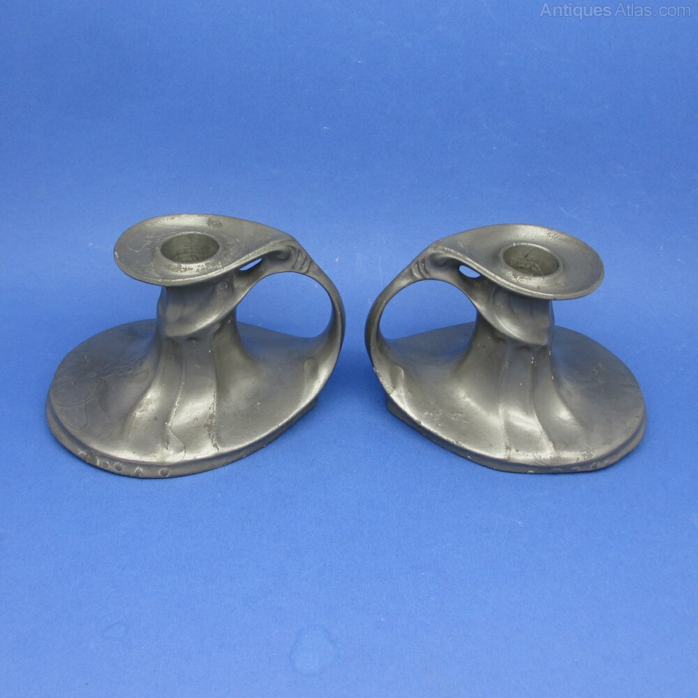 Pair of Kayserzinn Pewter Jugendstil Candlesticks