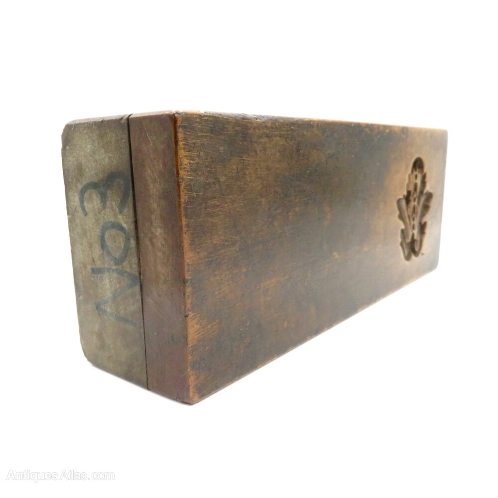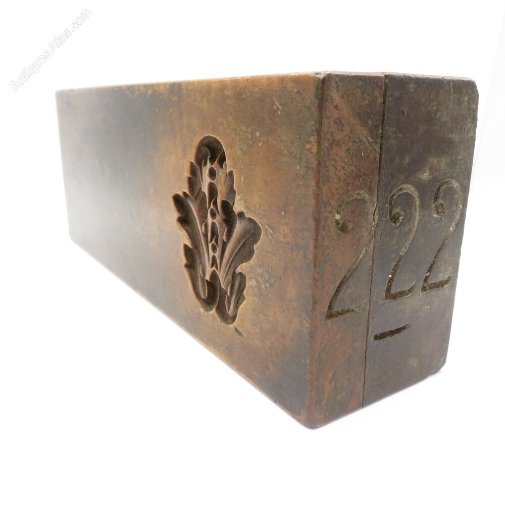 A good example of a frame maker's mould. Deeply carved, in negative, this would have been filled with compo and, when dry, the resultant element applied to a frame before decorating and gilding. Now used for repairs and restoration, or as decorative objects in their own right, this example, measuring 22 x 8.5 x 5.5cms, could be wall-hung, or it stands perfectly well on its own. It has an extra piece of wood screwed and glued on to the back to help stability and allowing heavy weight to be applied to achieve the best quality of moulding.One unusual feature of this example is the way the carved mould is at one end of the block. This must be to do with the frame-maker's designs.