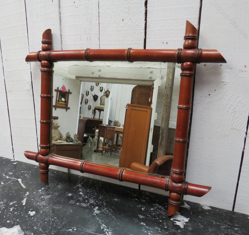Late 19th century, early 20th century French decorative faux bamboo wall mirror with foxing to the original glass plate, ready to hang.Shipping information