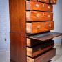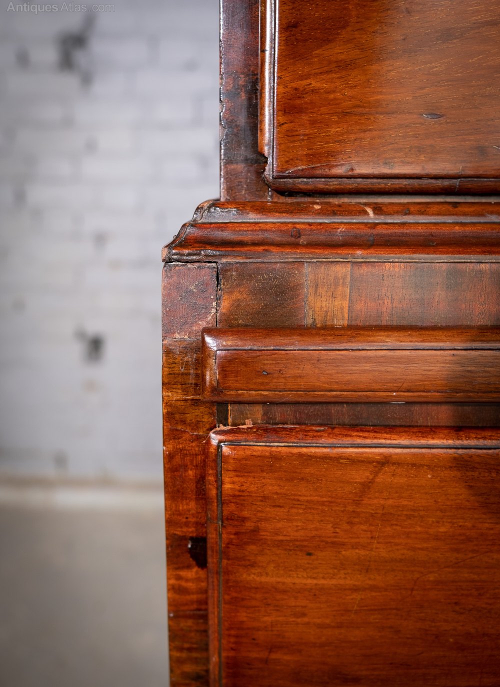 The chest has knocks and wear throughout, most noticeably a chip to the top righthand cornice and middle left hand corner, just below the waist moulding. The whole chest has been re-finished in recent history and boasts a fine glossy finish.
